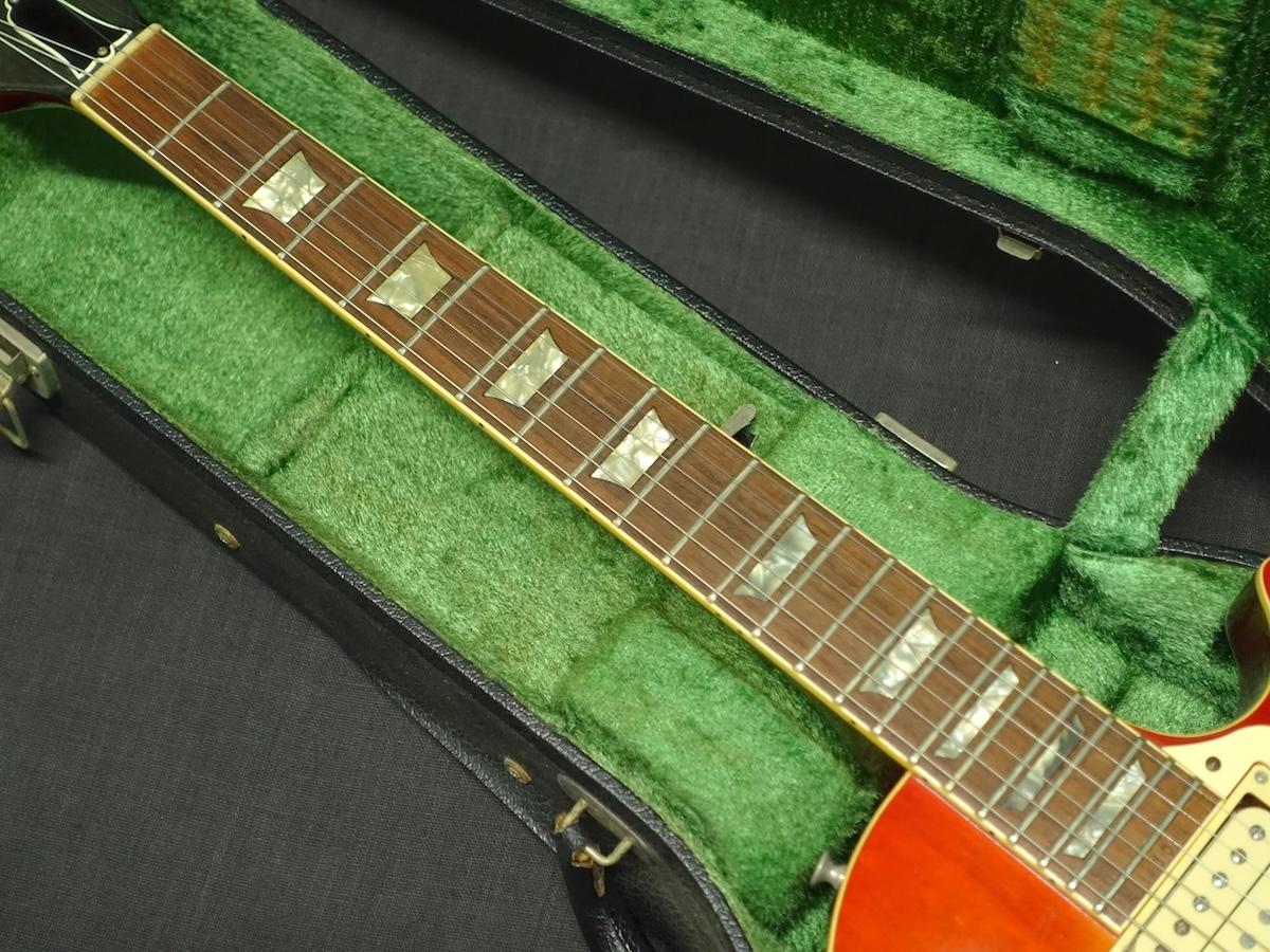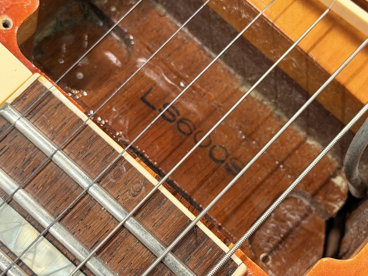 フレットは全体的に減りや凹みが目立ち、残り6割程度の残量です。ネックはねじれや元起きなどが見受けられる状態で、トラスロッドは締める方向へ余裕のある状態。現状では適正な弦高でビビりや音詰まりはございませんが低めのセッティングは難しいかと思います。