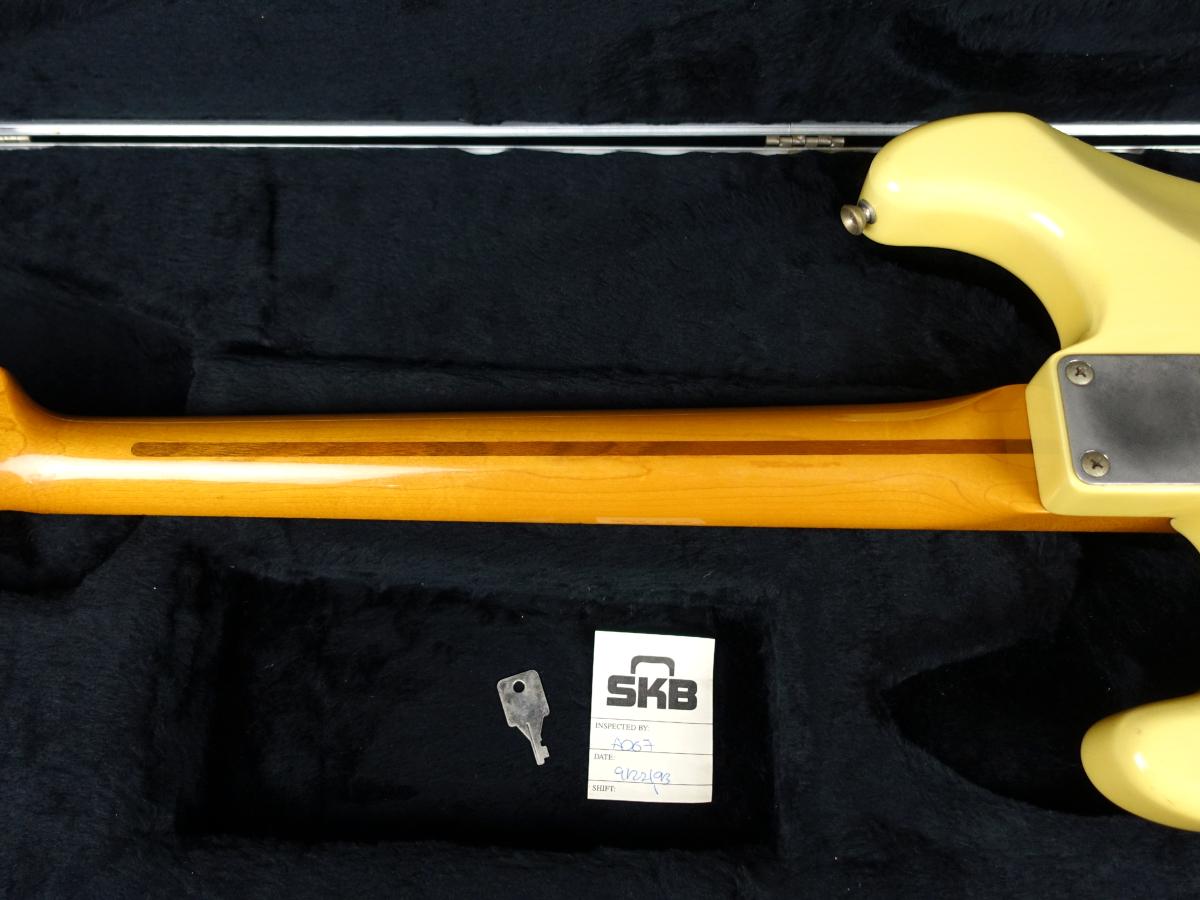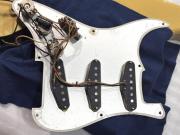 ピックアップにはステッカー等がないものの、出品前計測時の実測の抵抗値よりおそらくSeymour Duncan製のSSL-1と思われるPU×3基搭載。