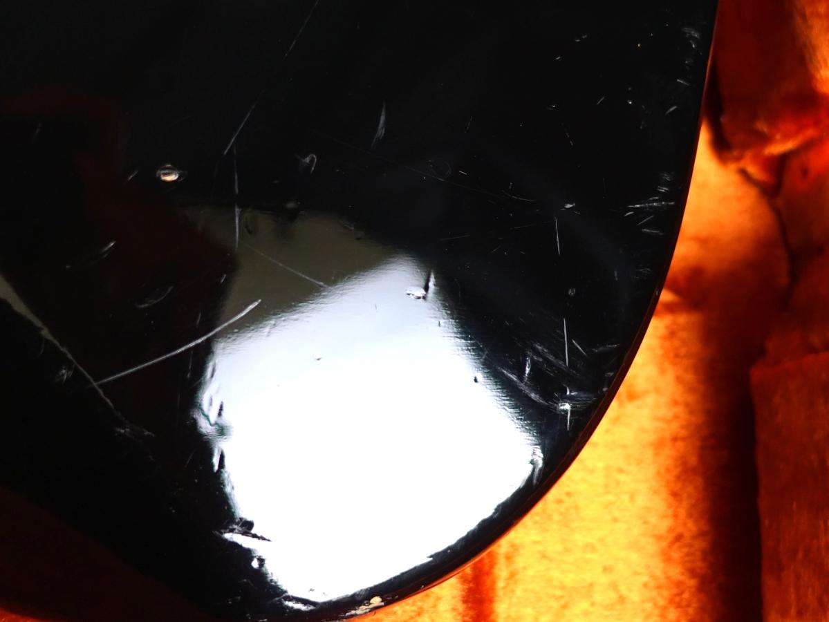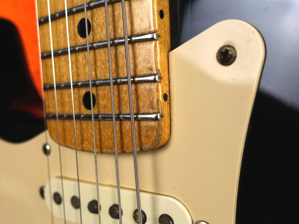 トラスロッド調節位置にピックガードの割れがありますが使用に関しては問題はございません。またヘッドトップのメーカーロゴデカールの貼り直しがされております。