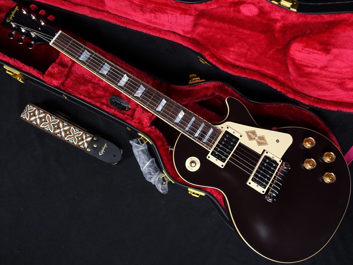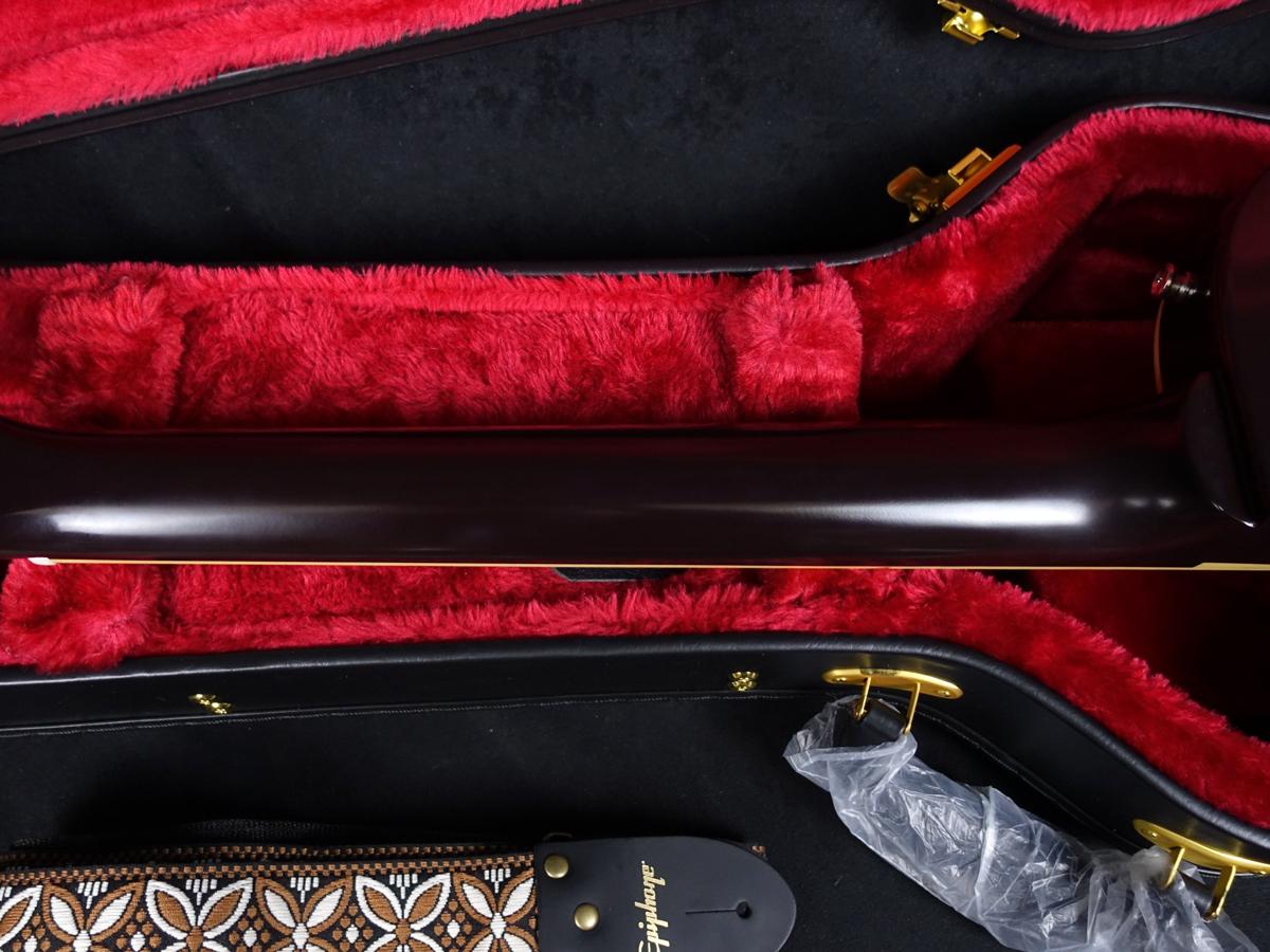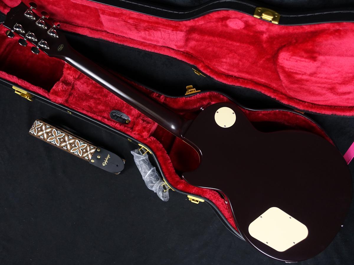 ヴィンテージ・スタイルのレプリカ・ストラップとInspired by Gibson Customグラフィック入りのEpiphoneハードシェル・ケースが付属します。