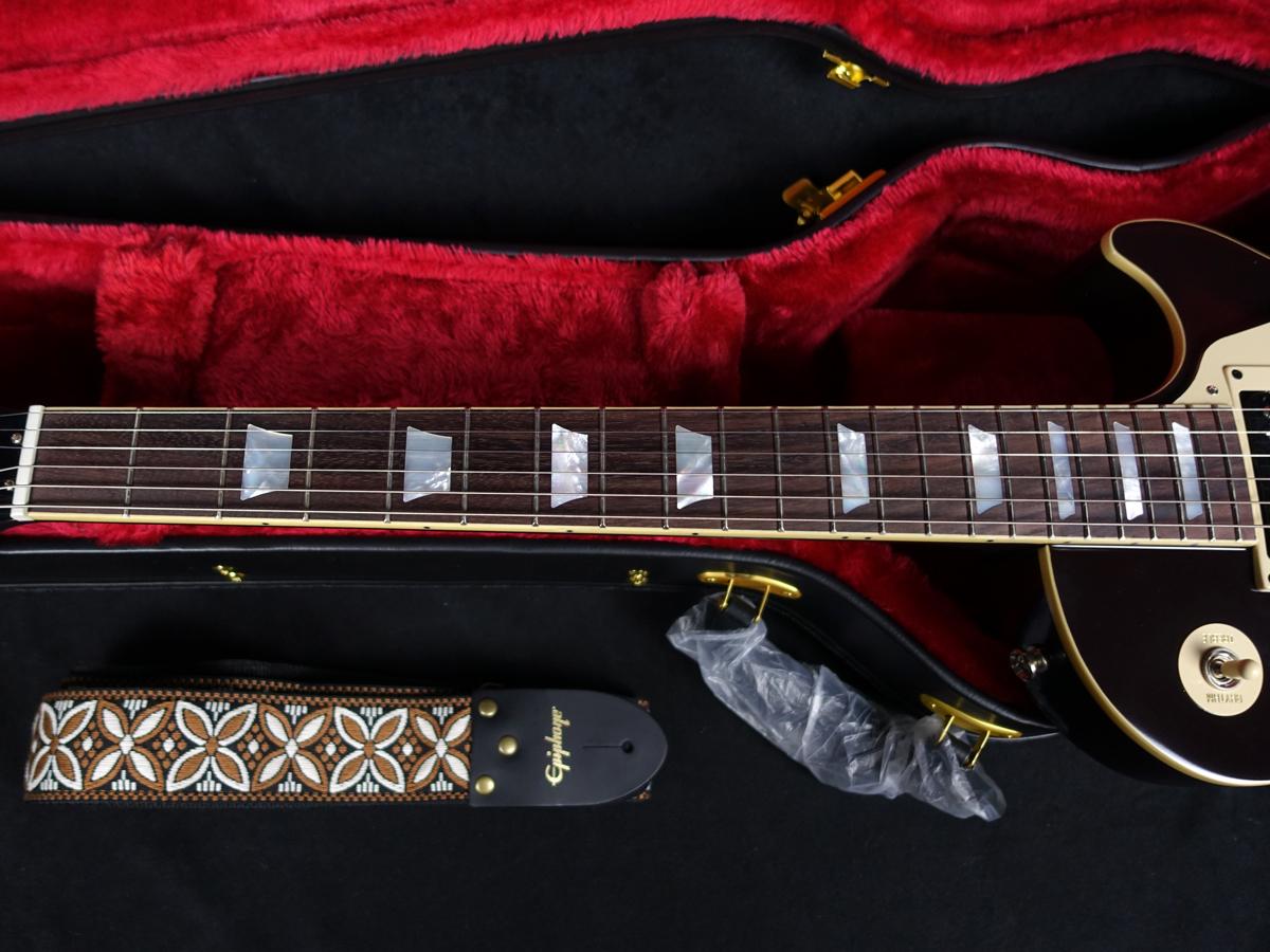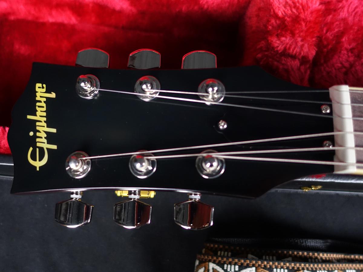 ヘッドストックはギブソン伝統の“オープンブック”スタイルを踏襲し、エイジド・マザー・オブ・パール素材によるEpiphoneロゴが埋め込まれています。