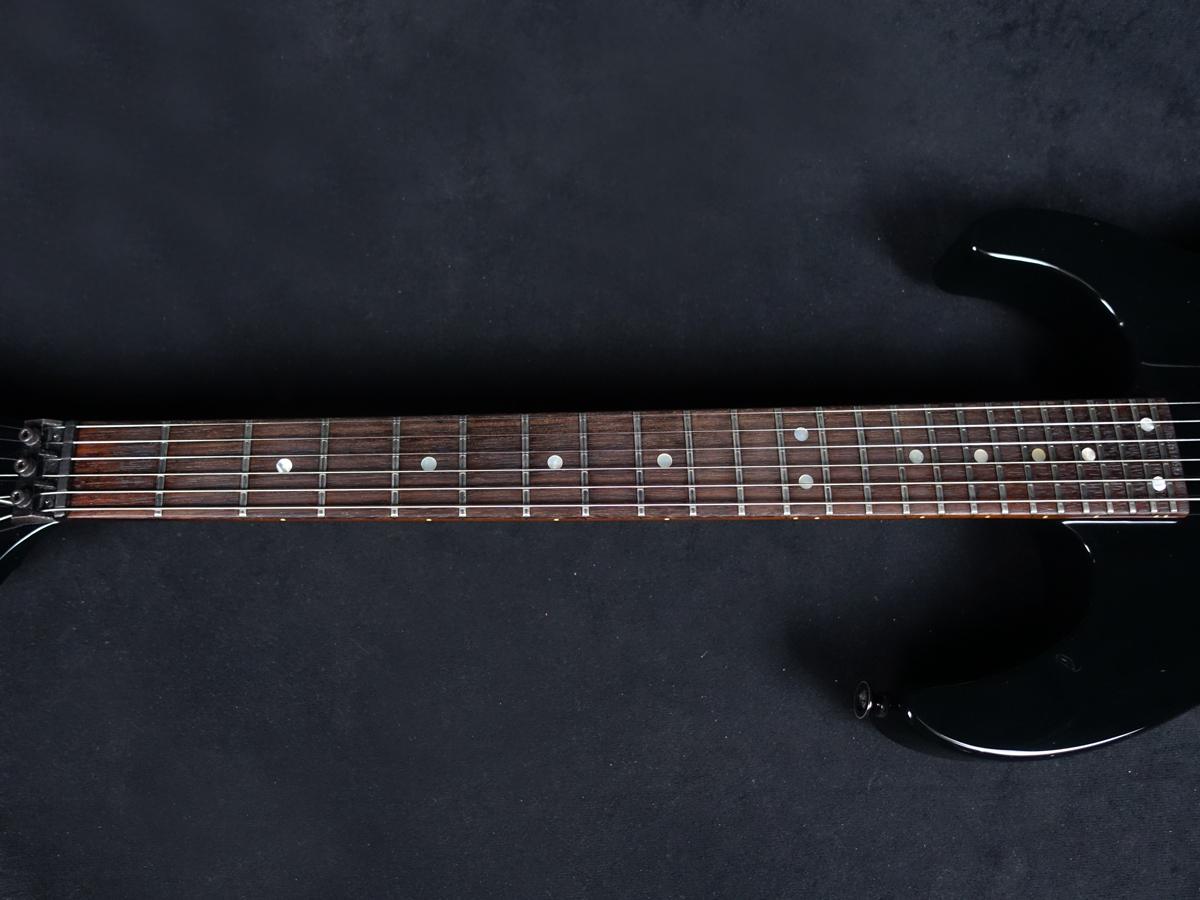 ネック周りはプレイアビリティを考慮した薄めのネックシェイプ、300mm-400mmのコンパウンドラディアス指板に24F仕様のジャンボフレットを採用しております。