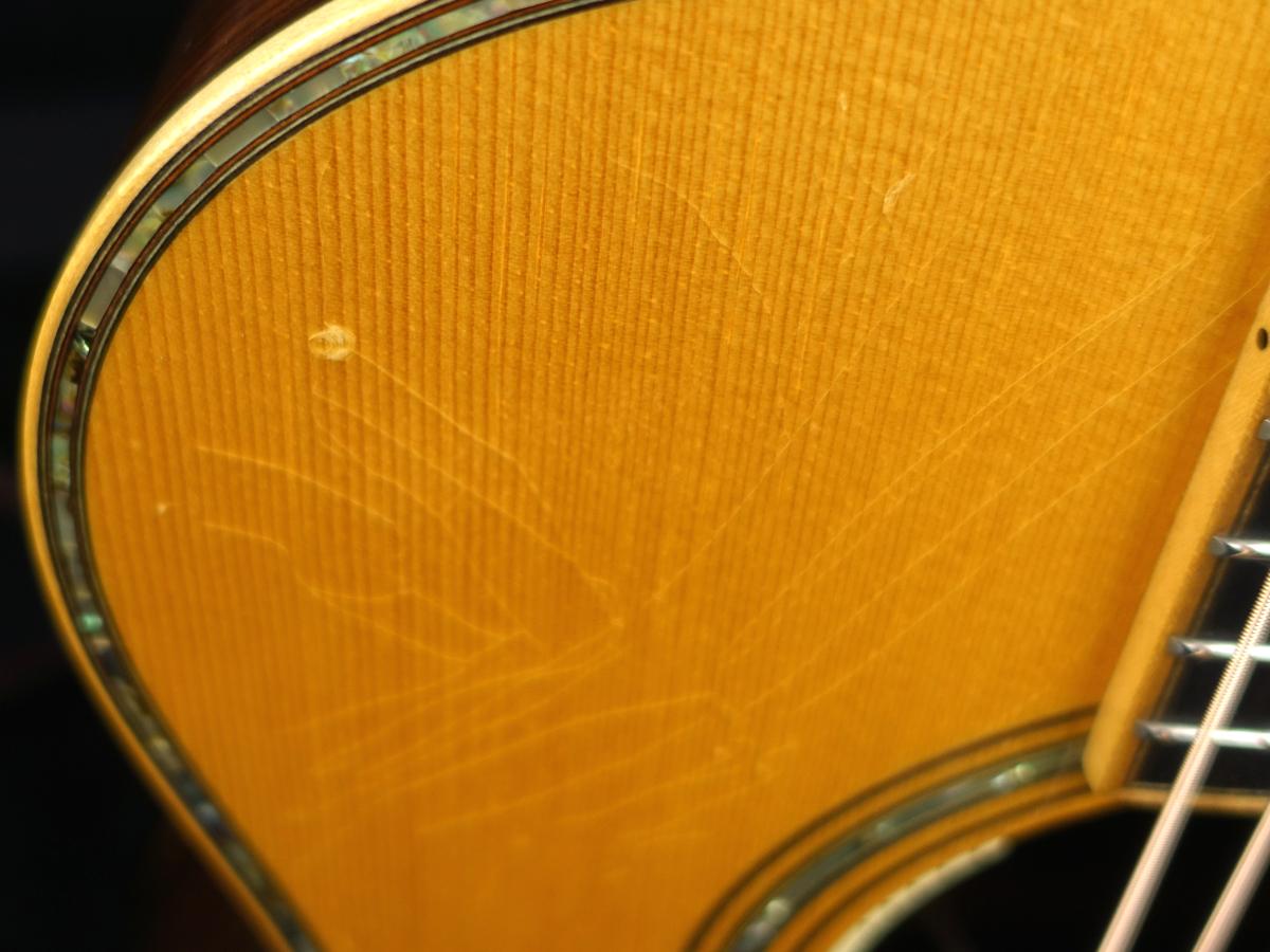 全体的に打痕、擦り傷、弾き傷、塗装クラック、木部の塗装の目痩せなど、ギター全体的に強い使用感が感じられるコンディションになっております。