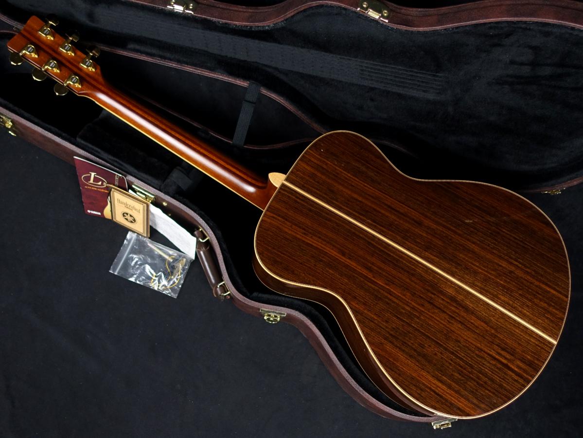 ウッドマテリアルは、スプルーストップにローズウッドサイドバック、マホガニー+ローズウッド5プライのネックにエボニー指板を採用。