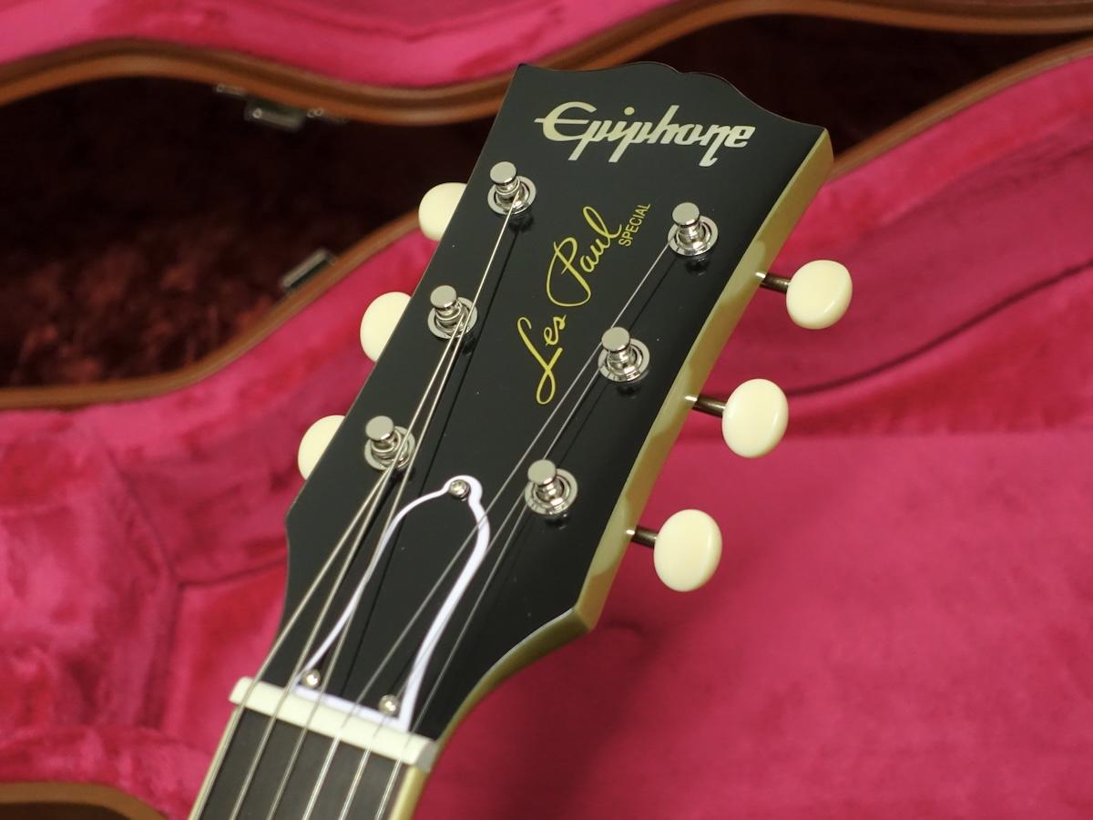 ギブソン・スタイルの“オープンブック”ヘッドストックには、Epiphone Deluxe 3連チューナー(ホワイトボタン付き)を搭載。Graph Techナットがチューニングの安定性を向上させています。ヒストリック・スタイルのラップアラウンド・ブリッジ(イントネーション調整ネジ付き)を採用し、弦の振動を確実に伝え、Les Paul Specialならではの豊かなサステインを生み出します。