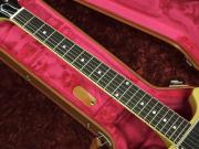 外張りがブラウン色で内張りがピンク色のヴィンテージスタイルのハードケースが付属します。