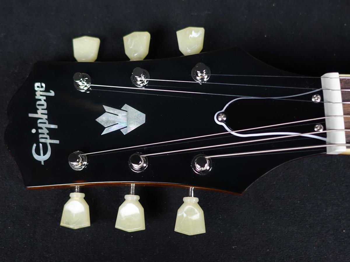 合板メイプルのトップ・サイド・バック、メイプルのセンターブロックのウッドマテリアルに、エピフォン製アルニコクラシックPROハムバッカーを搭載。
