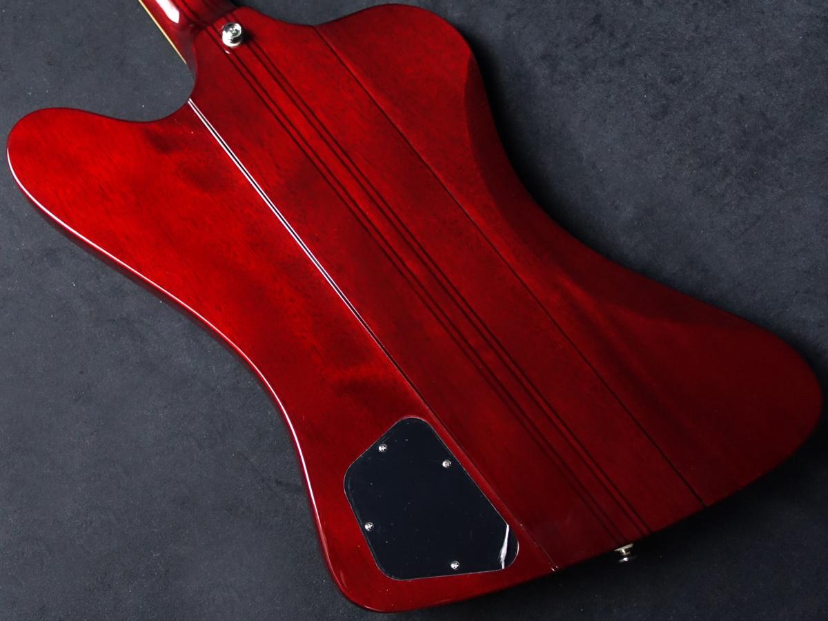 ピックガードには、赤色でホットスタンプされたアイコニックなFirebirdロゴがあしらわれています。