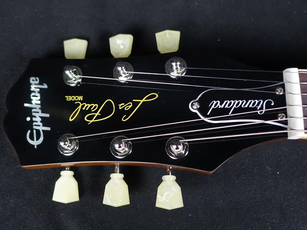 エピフォン・レスポール・スタンダード50sは、グロス仕上げのマホガニー・ボディにメイプルトップの材構成。