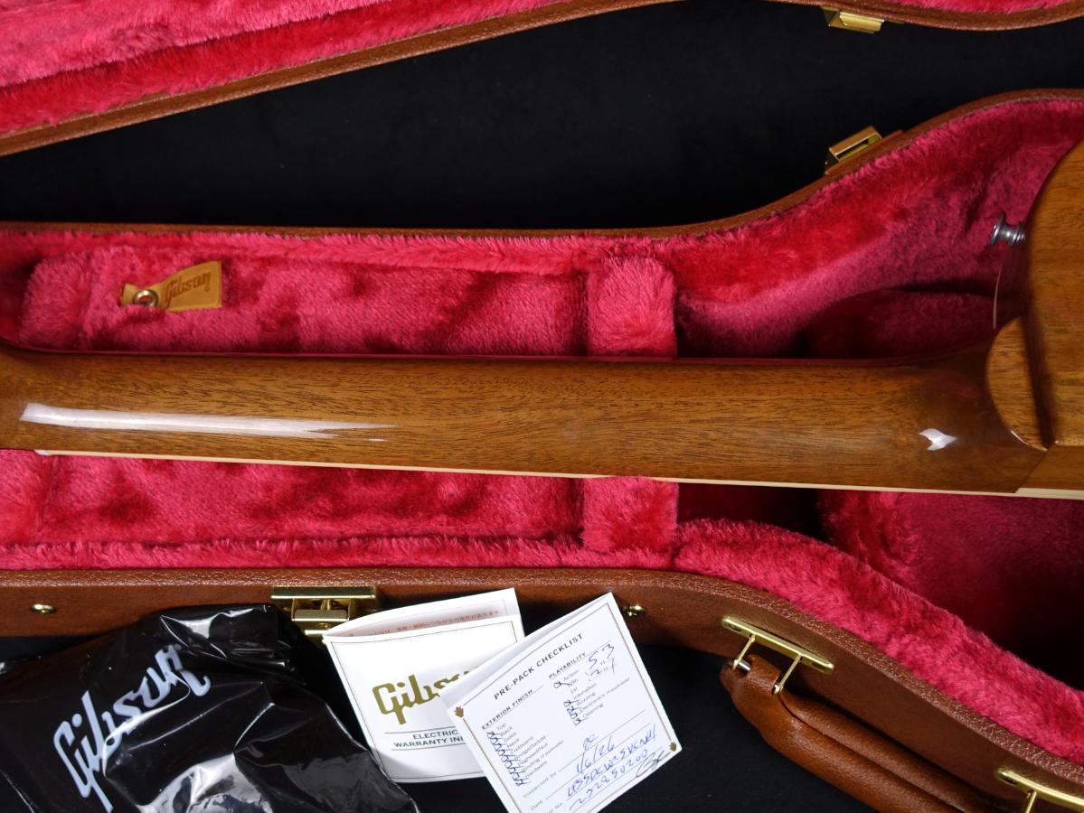 また、ABR-1 Tune-O-Maticブリッジ、アルミ製ストップバー・テイルピース、キーストーンボタン仕様のVintage Deluxeチューナー、ダイヤルポインター付きのエイジド・ゴールド・トップハット・ノブを搭載。
