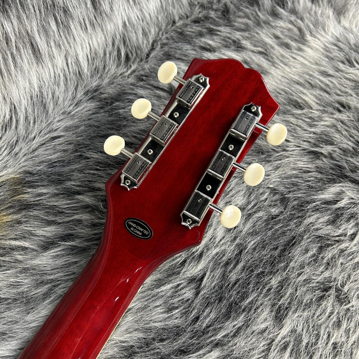 セットネック構造のマホガニー・ネックには60sスリムテーパー・プロファイルを採用し、バインディング付きローズウッド指板には22本のミディアム・ジャンボ・フレットとパーロイド・ドット・ポジション・マーカー・インレイを備えています。1960年代スタイルのカラマズー・ヘッドストックには、アイボリー・ボタンを備えたエピフォン3連ペグとGraph Techナットを搭載し、安定したチューニング性能と確かなヴィンテージ感を実現しています。ヘッドストックには、マザー・オブ・パールのエピフォン・ロゴがインレイされています。