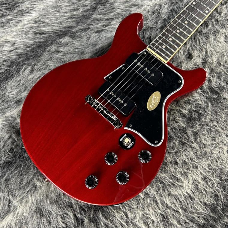 エピフォンはこの度、1960年代初頭のモデルを再現したInspired by Gibsonコレクションとして、Les Paul Special Double Cutをリリースします。スラブ構造のマホガニー・ダブル・カッタウェイ・ボディを採用し、指板全域へのスムーズなアクセスを実現しています。