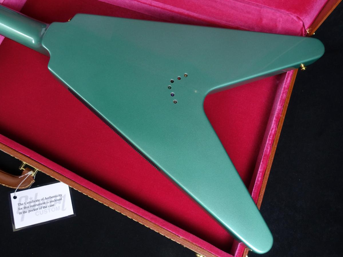 ギター全体ににInverness Greenカラーを採用した"Gibson Custom Shop 1958 Korina Flying V Reissue VOS Inverness Green White Pickguard GH"を弊社スタッフが現地ファクトリーでゲットして参りました。