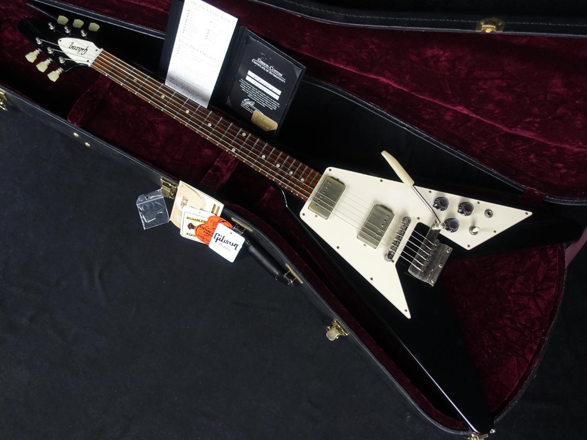 本機は1950年代とは異なるスタイルで再生産が開始された当初の1967年頃の仕様をリイシューした"Gibson Custom Shop 1967 Flying V w/Maestro Vibrola VOS Ebony"。