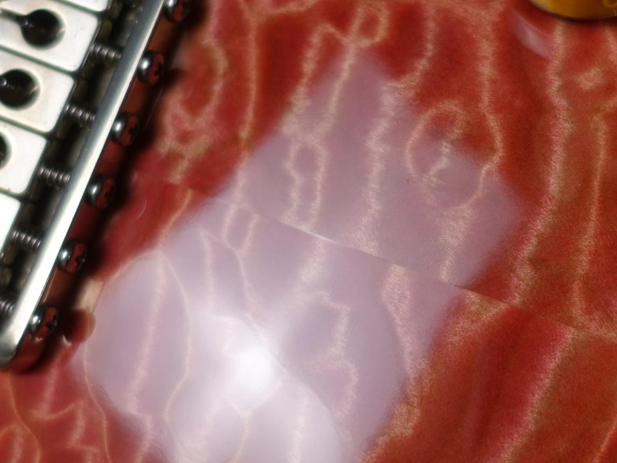 経年に伴う塗装の色焼けやトップの色抜けをはじめ、指板サイドの塗装のウェア、ギター全体に擦り傷・弾き傷・打痕・バックル痕等が散見されるなどそれなりに使用感があるものの、