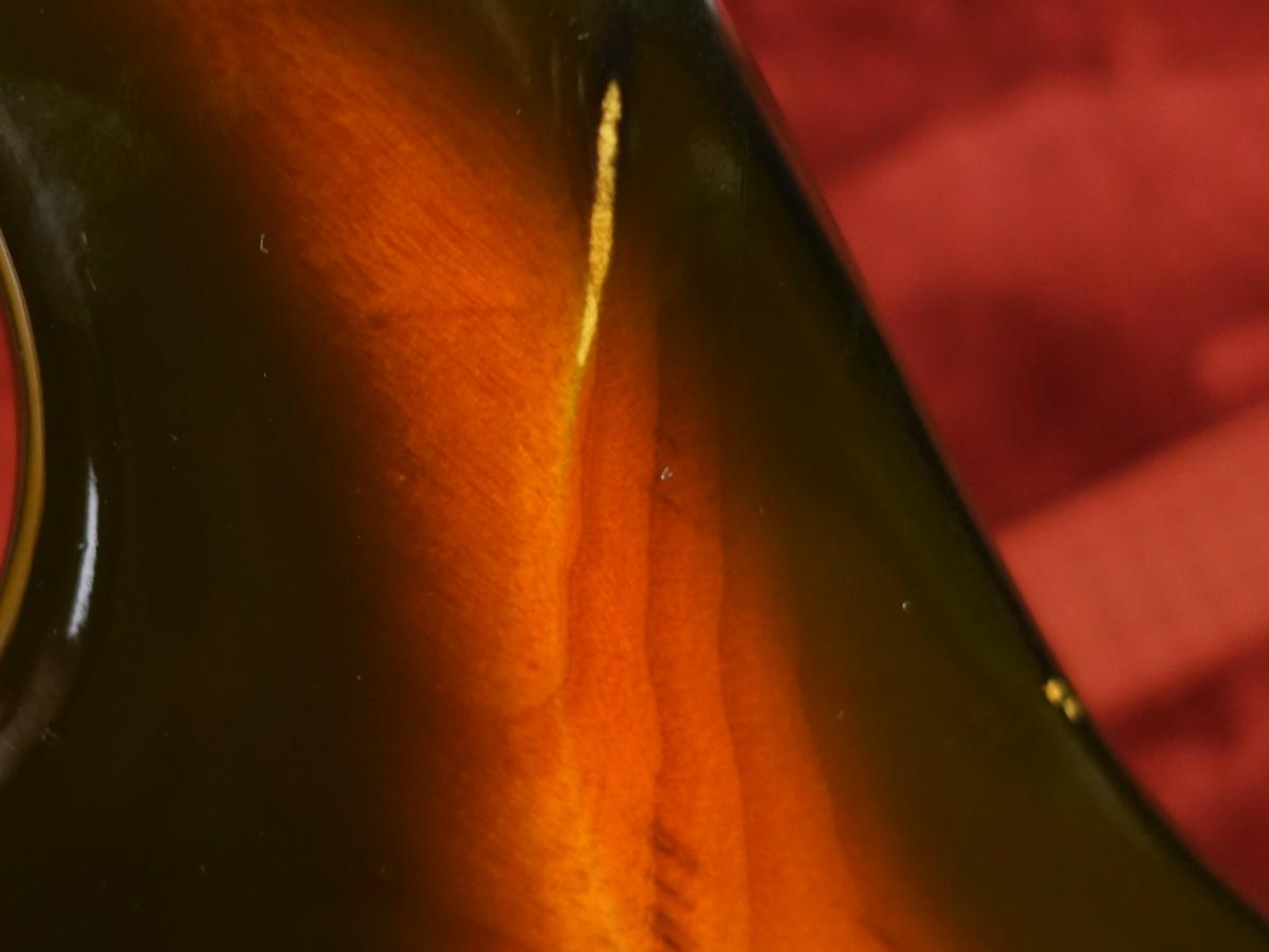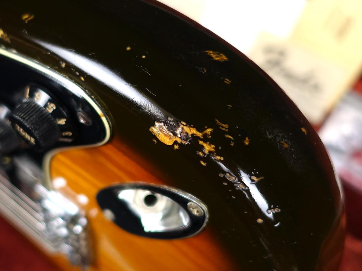 特にボディの塗装がかなり反応が生じて軟化しており、塗装面を押し込む動作などすると塗装面が凹む場合がございます。