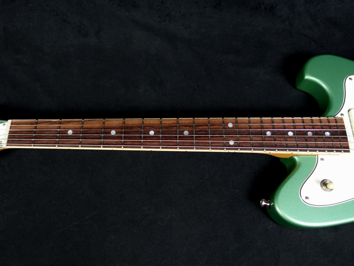アイボリー・カラーのネック・バインディングが施されたローズウッド・フィンガーボードには、パーロイドのドット・ポジションマークが配置され、25.5インチ(648mm)スケールとなっています。