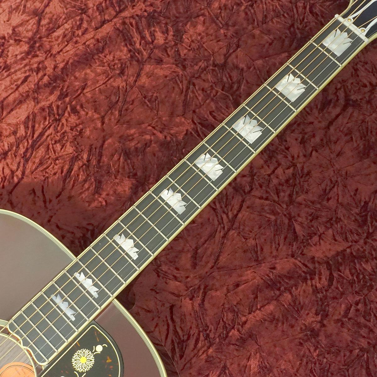 単板のローズウッドによるサイド&バック、サーマリー・エイジド・スプルース・トップ、柾目で木取りされたスキャロップドXブレーシングを備え、ネックは2ピース・メイプルにローズウッド・ストリンガーを挟んだ構造で、ラウンドDシェイプ。