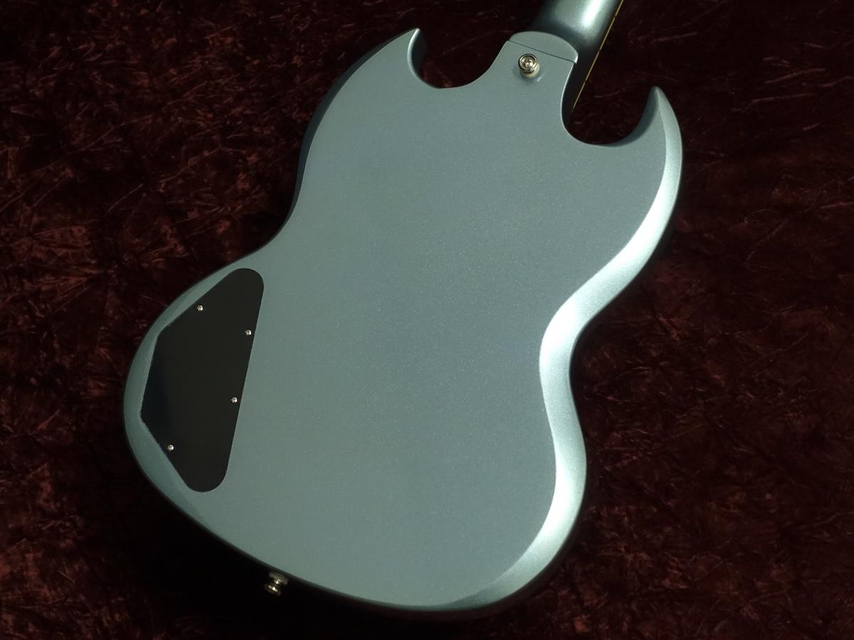 SGスタンダードはプレイヤーにフィットするコンター加工付きのボディ形状を持ち、ダブル・カッタウェイにより22フレット全てのポジションへの容易なアクセスを実現しています。セットネック方式でジョイントされたネックはSGの高いサスティン特性に寄与しています。ネックシェイプはスリム・テーパー Cプロファイルが採用され、素早い滑らかなフィンガリングを可能にしています。ミディアム・ジャンボ・フレットが打たれたローレル指板にはパーロイド素材のディッシュ・インレイが施され、12インチの指板R(ラディアス)採用によりロー・ポジションでのコード・プレイやハイ・ポジションでのベンディングの両方をストレスなく行えます。