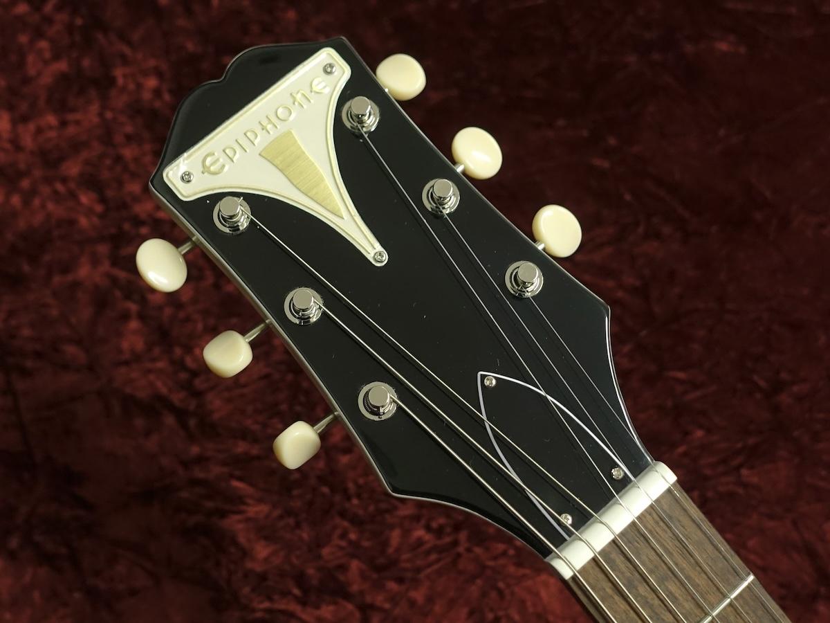 軽量なマホガニーボディにはエピフォン・オリジナルのミニハムバッカーを2基搭載。オールドエピフォン・ライクなビキニプレートも魅力的。