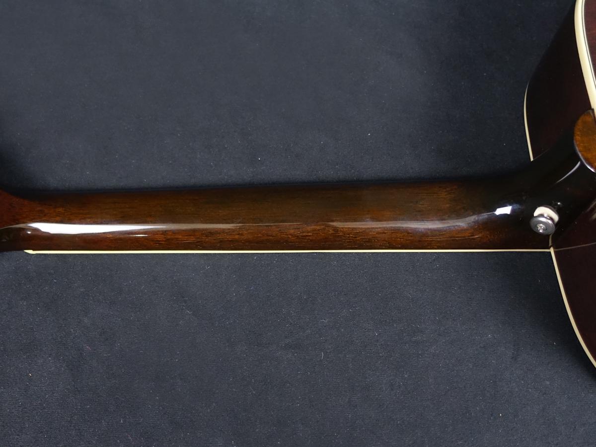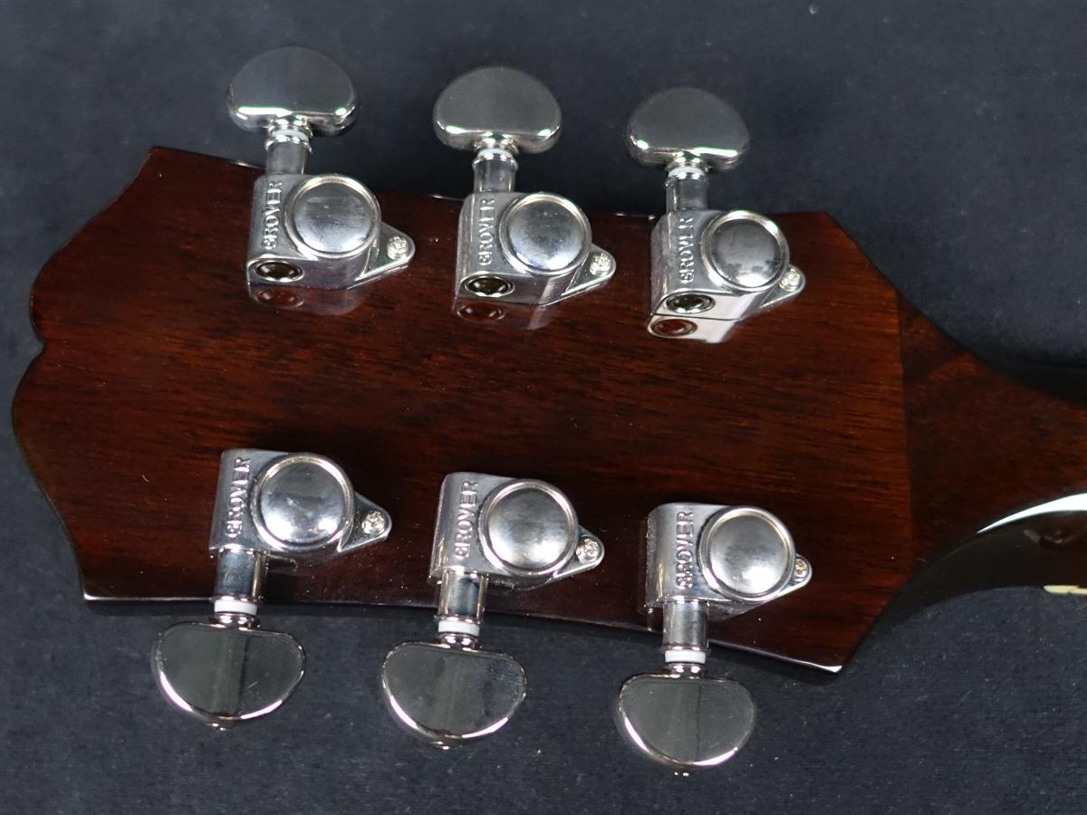 ボディマテリアルは、合板マホガニーボディ、トップには単板スプルースを使用。