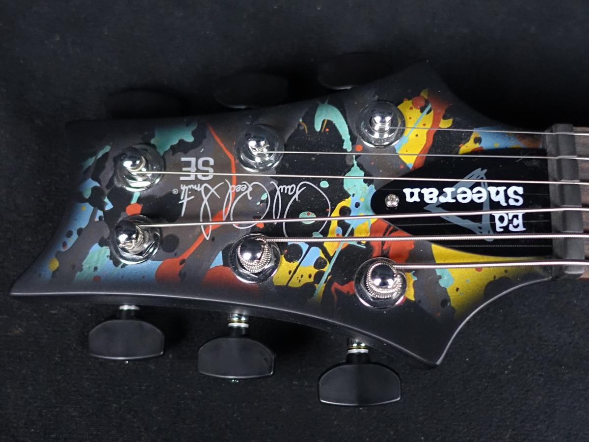 世界1,000本限定で生産されるこのPRS SE “Cosmic Splash”には、シーラン自身初となるアート作品展「2025 Cosmic Carpark Paintings」で発表された作品のひとつが、ボディトップ全面に施されています。