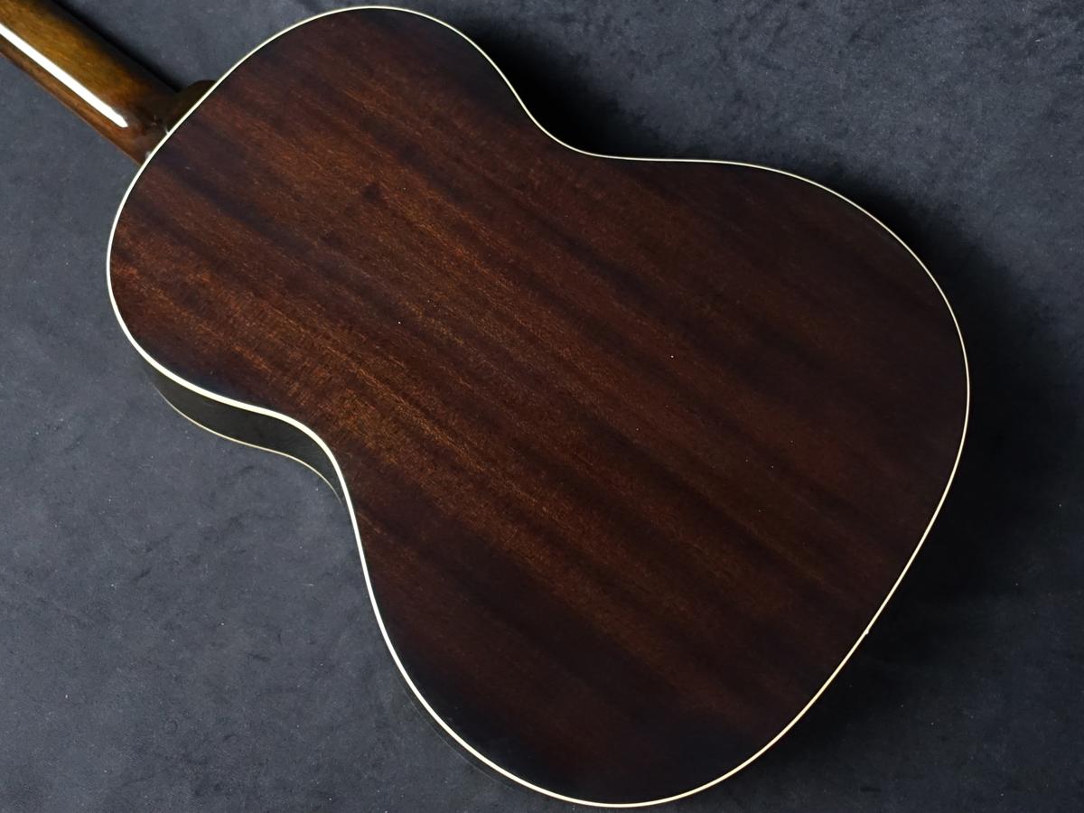 ボディマテリアルは、合板マホガニーサイド/バックに、単板スプルーストップを使用。トップ/バックともに1plyのクリームバインディングが巻かれています。