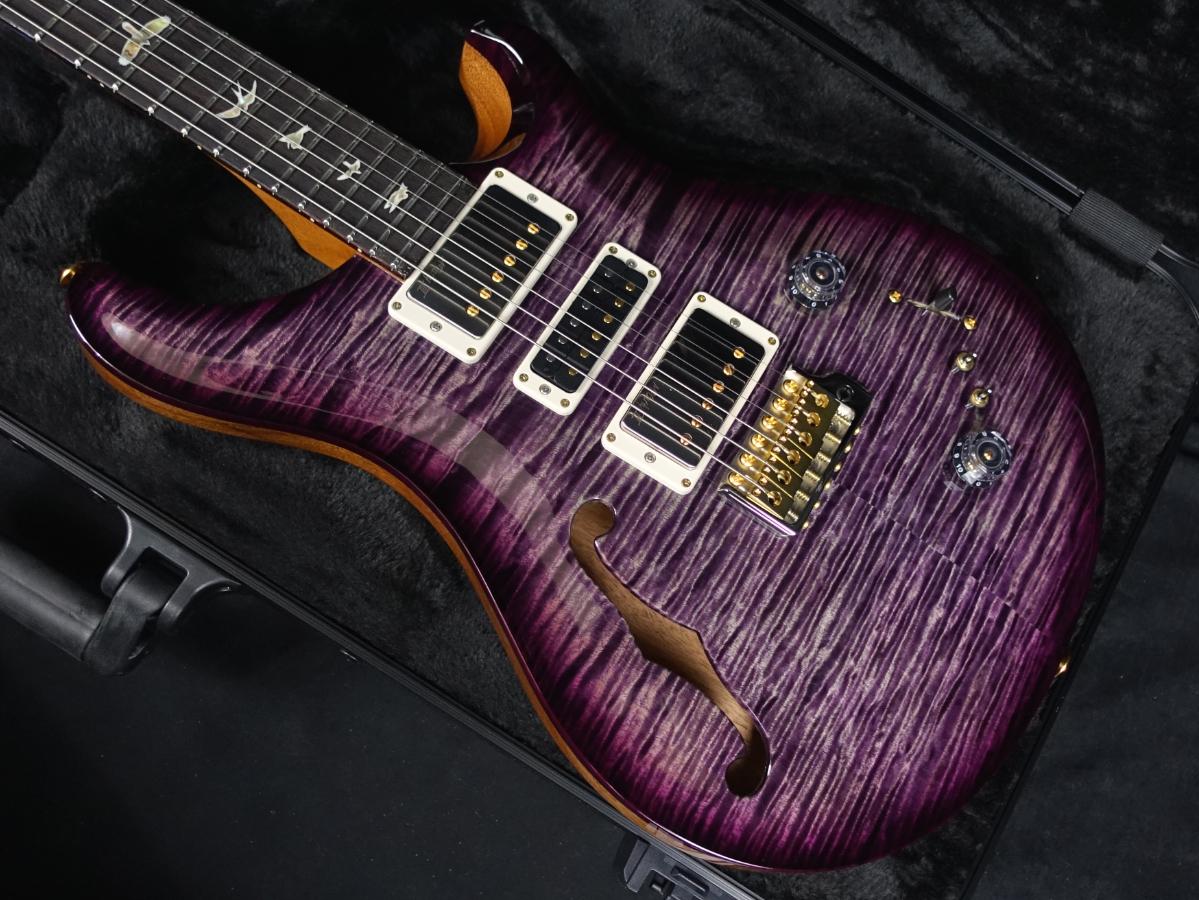 その他のスペックとしては、メイプル・トップ、マホガニー・バック、22フレット & 25インチ・スケールのマホガニー・ネック、ローズウッド指板を採用し、Phase IIIロッキング・チューナーとPRSオリジナル・デザインのGen IIIトレモロ・ユニットを搭載。ハムバッカーとシングル・コイルの音量差を抑えつつ、fホールを持つセミ・ホロウ・ボディ構造は、ギターのトーンに心地良い空気感と深みを与えます。