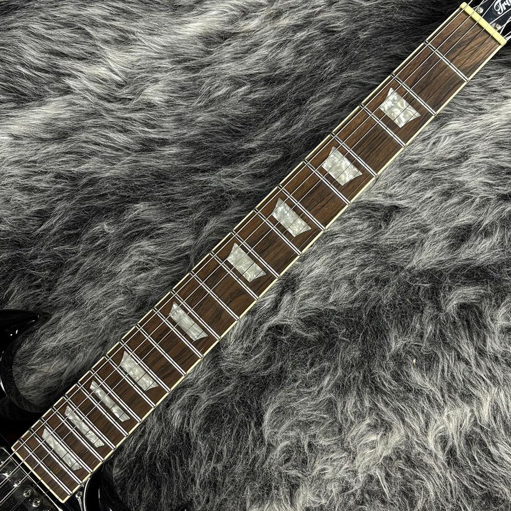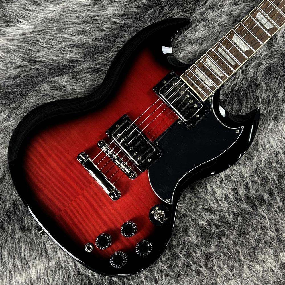 クラシックなSGモデルと同じボディ形状を採用し、トップには美しいフレイムメイプルをラミネート。