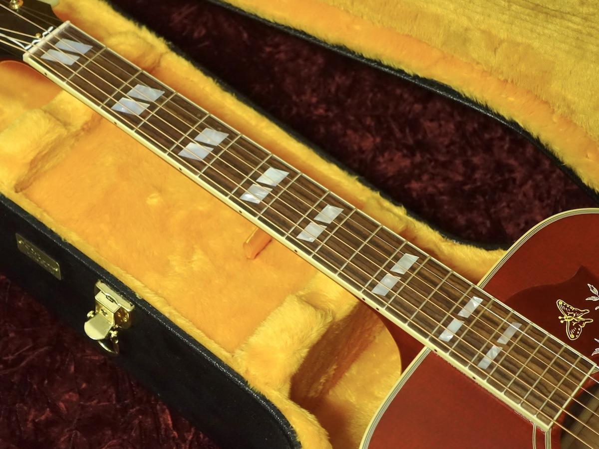サーマリー・エイジド・シトカ・スプルース・トップを擁する1960 Hummingbirdのサウンドや仕上がりは、当時アイコン的ステータスにあったミュージシャンのルックスや演奏を思い起こさせるのに十分です。固定ブリッジを採用し、シン・フィニッシュという極薄ラッカー塗装に加え手作業によるVOS処理で仕上げる手間のかかりようです。