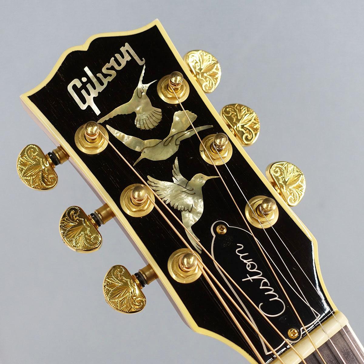 Gibsonの人気機種ハミングバードを基本とし、カスタム生産を象徴するようなアバロン貝によるロゼットとバインディング、手作業でエングレーヴされた象徴的なハチドリや蝶のデザイン、コア材など華麗な装飾が施され、レギュラーモデルとは一線を画す美しいモデルに仕上がっております。