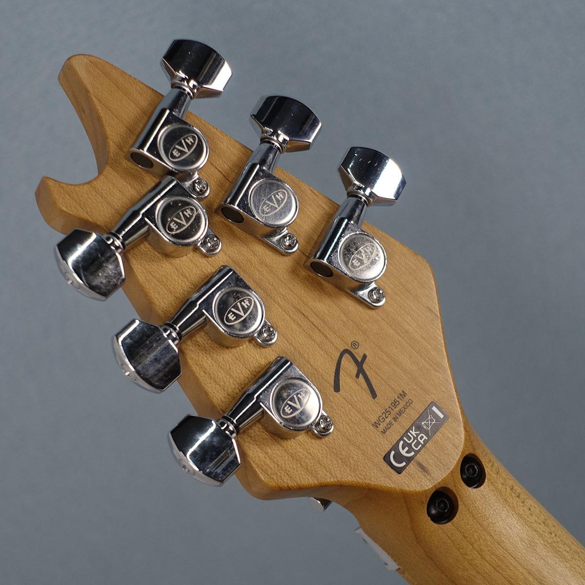 2基のCustom EVH Wolfgang Alnico 2ハムバッカーをボディにダイレクトマウントし、ダイナミックでありながら、明瞭なヴォイシングだけでなく、強力なコード弾きとメロディーラインを支える豊かなサスティンを提供します。高い信頼性を得るEVHブランドFloyd Rose Locking Tremoloとロッキングナットのコンビネーションにより、過激なアーム奏法をしても正確なチューニングを維持します。また瞬時にドロップDチューニングに切り替えられるEVH D-Tunaも装備しています。トレブルブリード回路付きのボリュームノブには500K EVH Bournsローフリクションポットを採用し、滑らかな音量調整が可能です。一方、トーンノブには250K EVH® Bourns®ハイフリクションポットを採用し、プレイ中のトーンノブの誤動作を防ぎます。