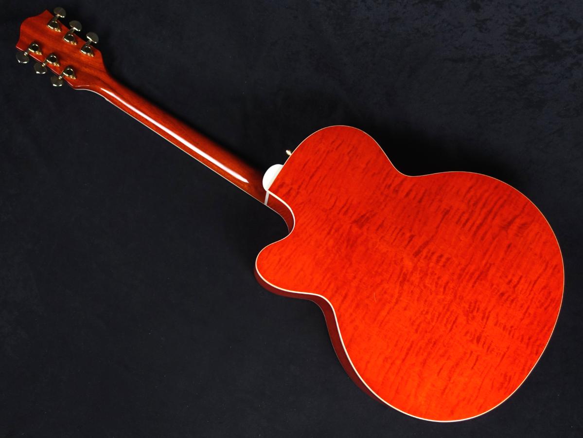 ボディ内部にスキャロップドXブレイシングを搭載し、伝統的なグレッチRancher三角型サウンドホール、Neo-Classicサムネイル・インレイを装備。