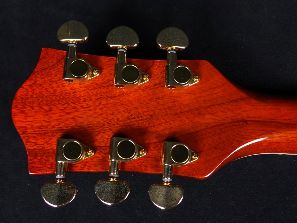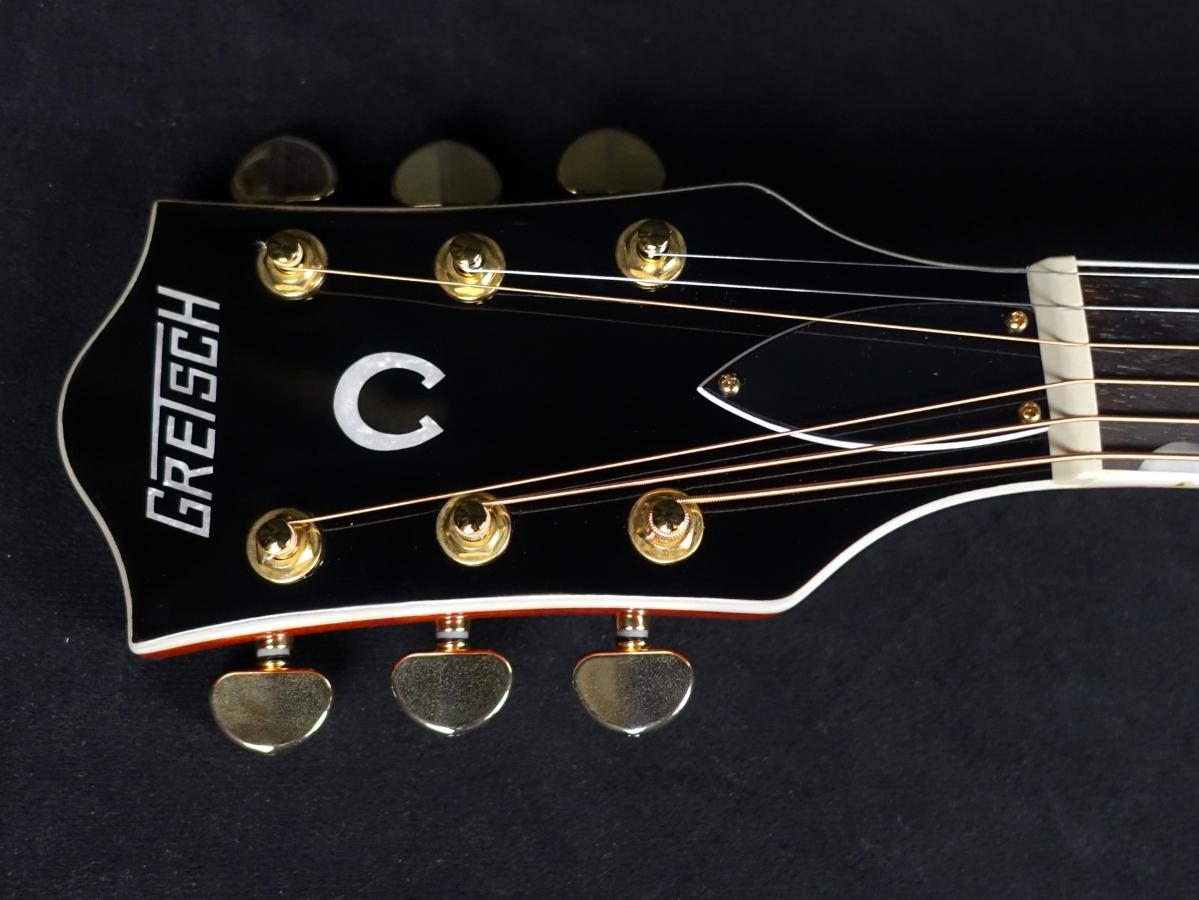 1940年スタイルのグレッチロゴ入りピックガード、ローズウッド台座のコンペンセーテッド・ブリッジ、ゴールドハードウェア、デラックス・ダイキャストチューナーを搭載した豪華な仕様になっております。