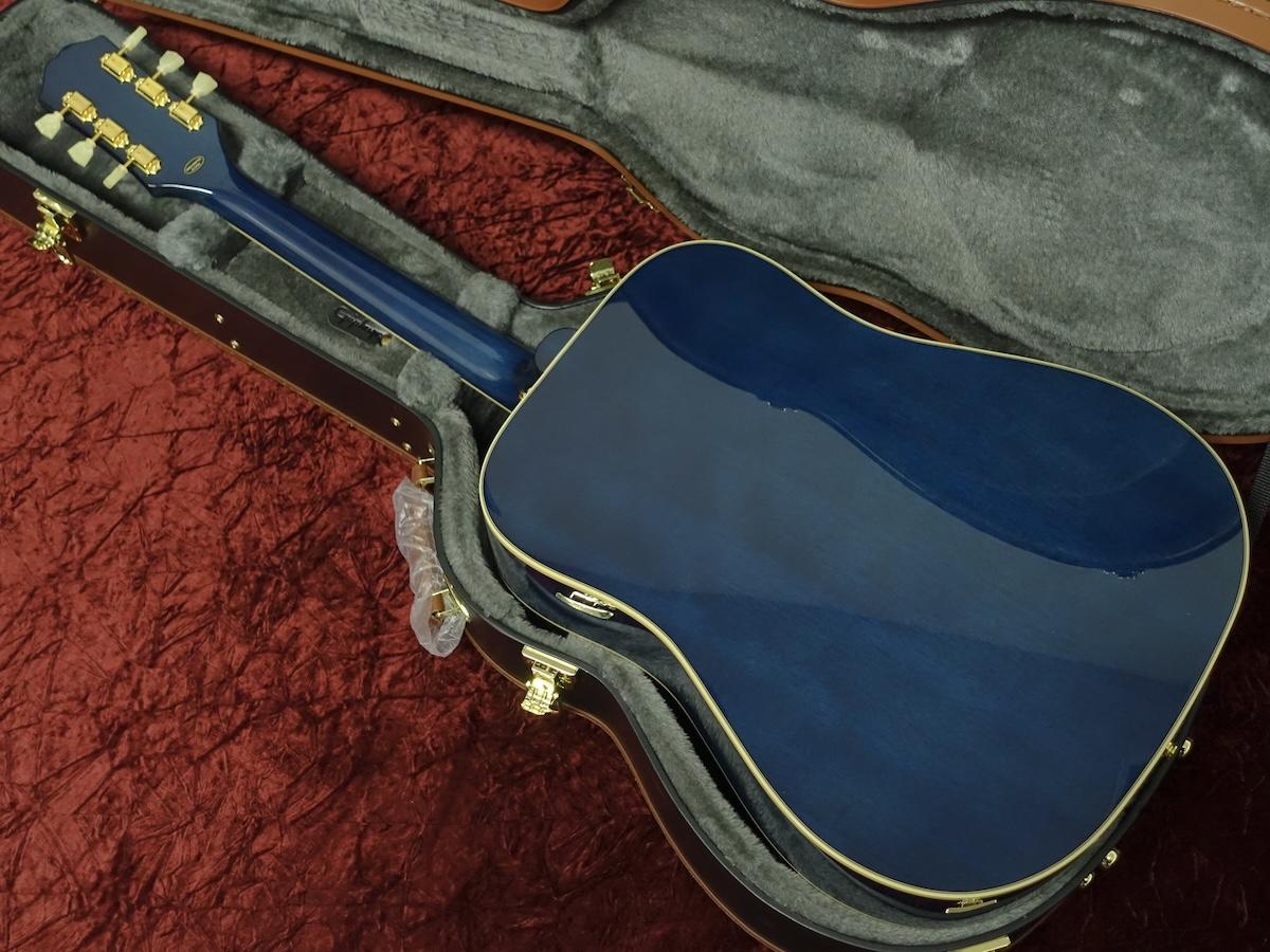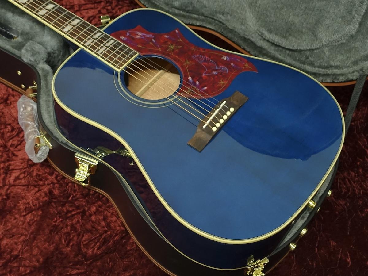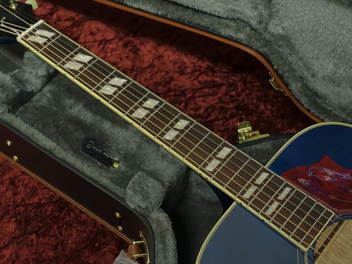 エピフォンの象徴的なハミングバードのバリエーションモデルとして、スクエアショルダーのレイヤードマホガニーボディに単板のシトカスプルーストップを採用しています。彼女の故郷テキサス州の正式な花であるブルーボネットにちなんだ鮮やかなグロス仕上げが特徴的です。