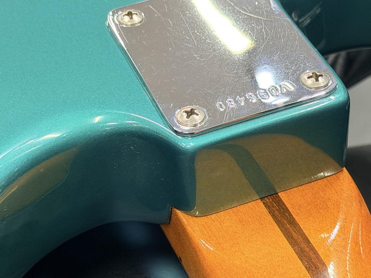 アルダーボディにメイプルネックをセットしたウッドマテリアル。オリジナル・オーシャンターコイズのレアな1本です。