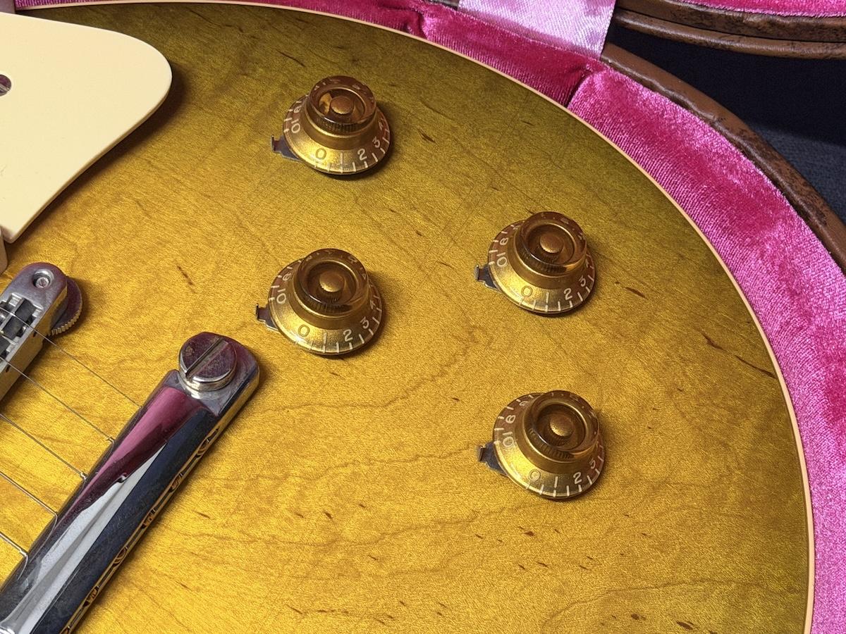 2019年にリファインされた、リアルさを増した“Gibson”&“Les Paul”ロゴ、リアルな色味に変わったディッシュインレイの採用による外観上のブラッシュアップやアンポッテッドのカスタムバッカー、ヴィンテージライクなキャパシターやポットを搭載。