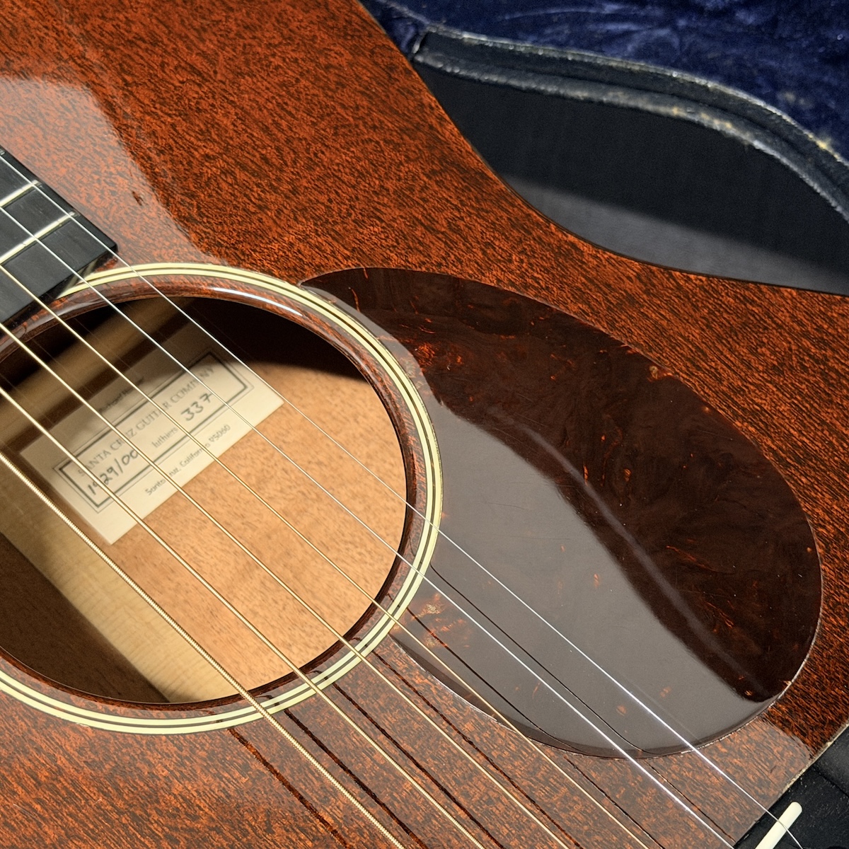 ホンジュラスマホガニーを仕様したボディにホンジュラスマホガニーネック、エボニーフィンガーボードをセットしたウッドマテリアル。ネックシェイプはヴィンテージライクなVシェイプでナット幅(0フレット)は約45.3mmで仕上げられております。Santa Cruz Guitar Companyへ確認をとったところ、2009年の製造品との事です。