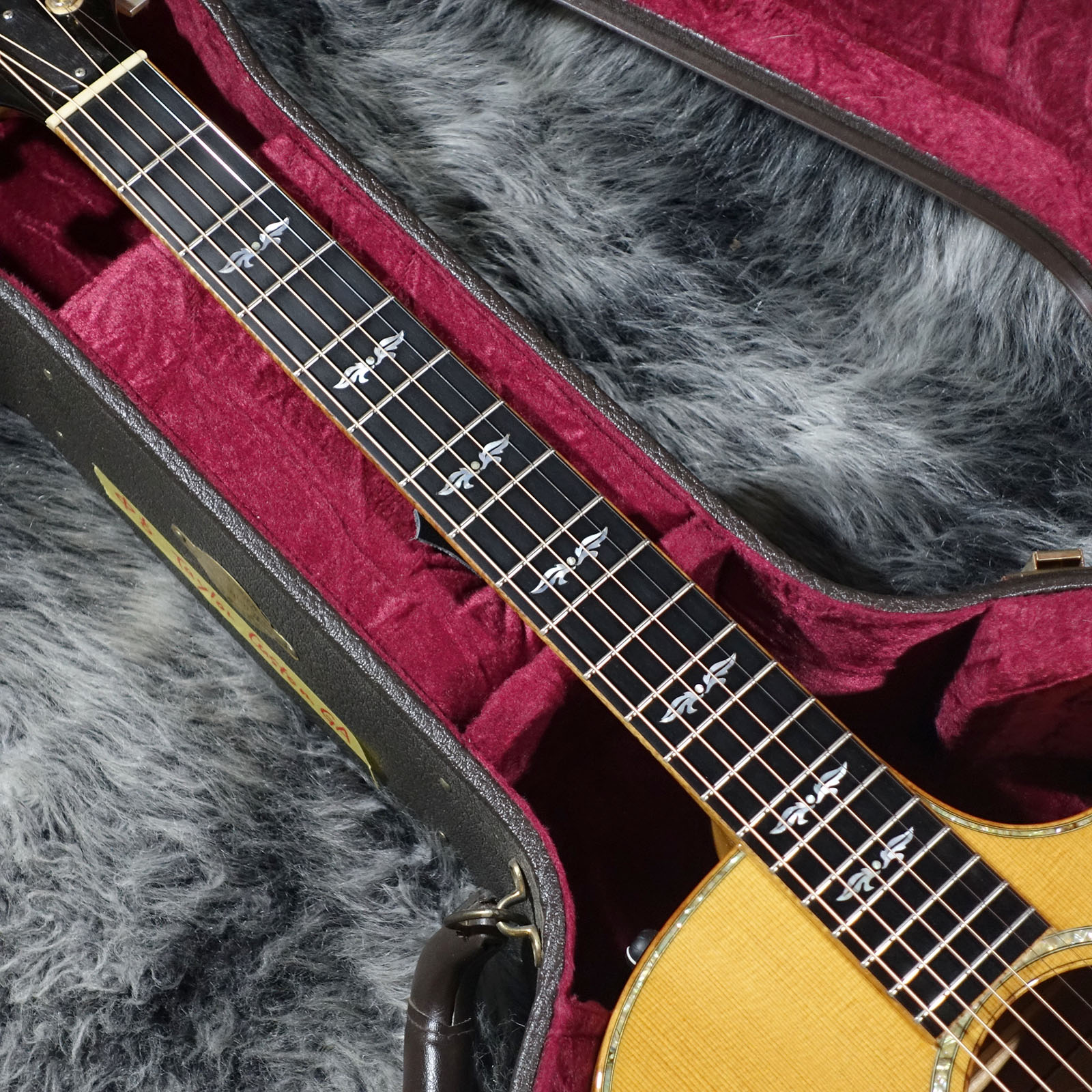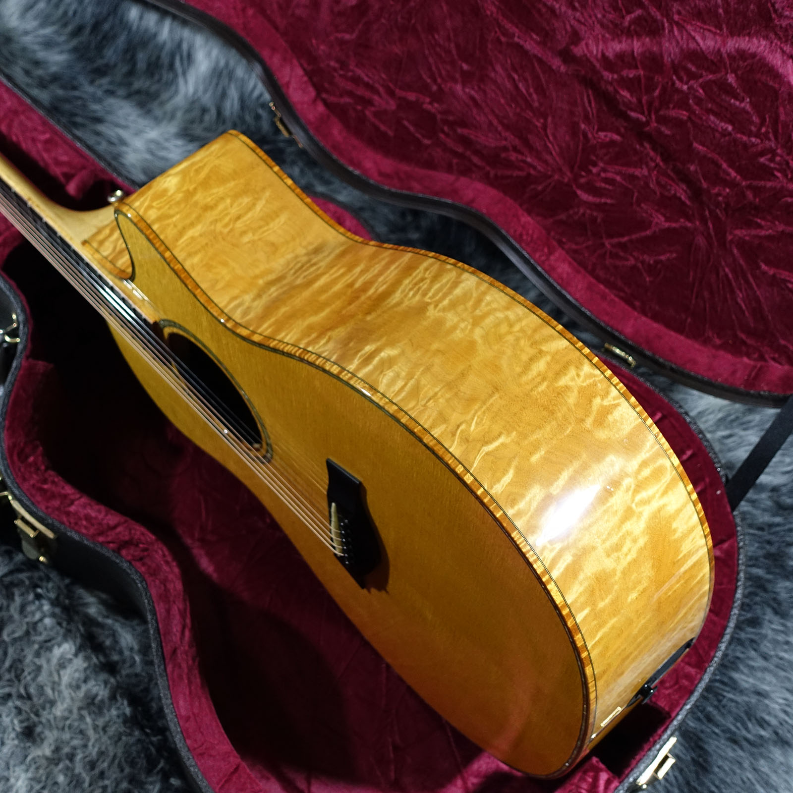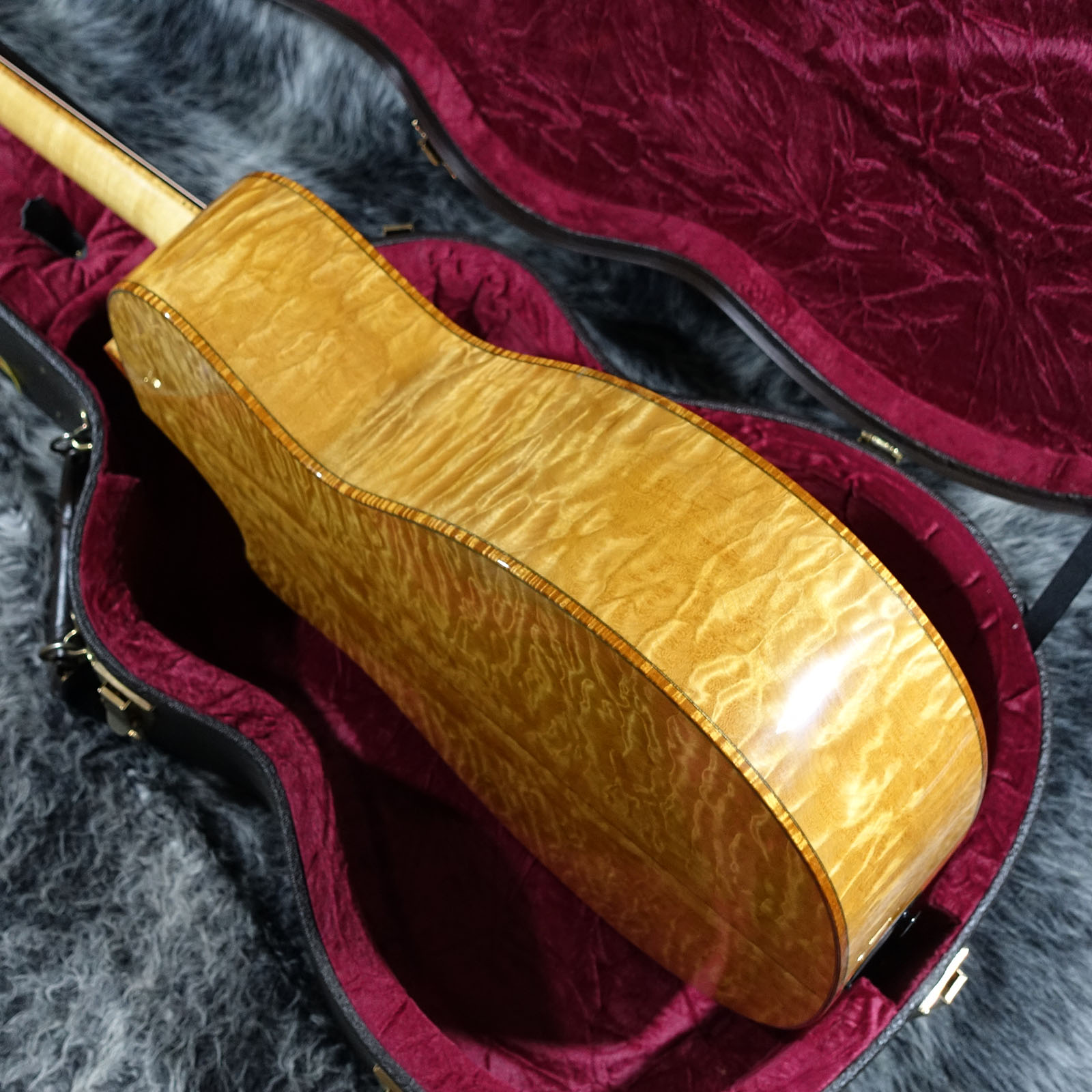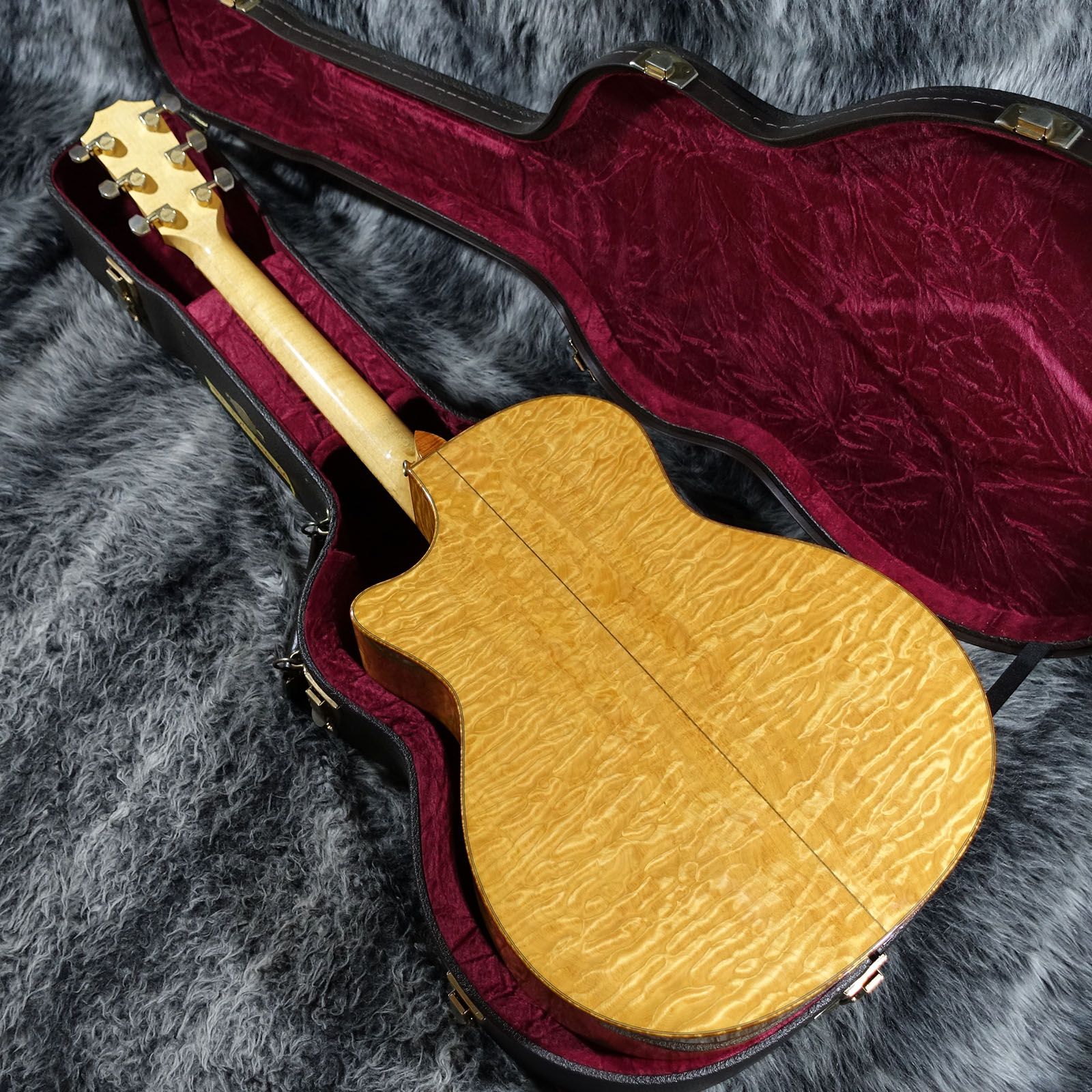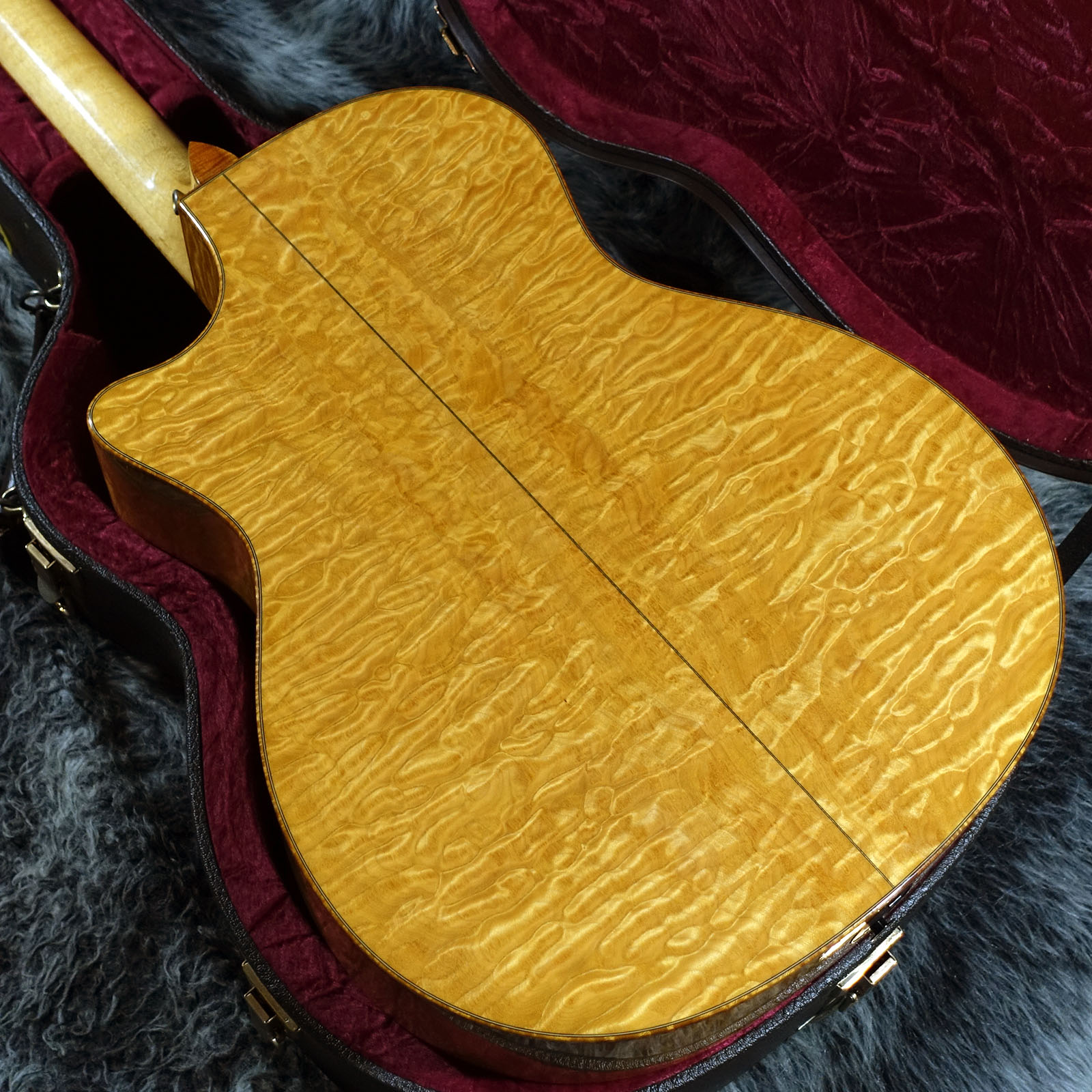 スペックシートが無いため正確な所は分かりかねますが、美しいキルトメイプルをサイドバックに使用した目を惹く1本です。