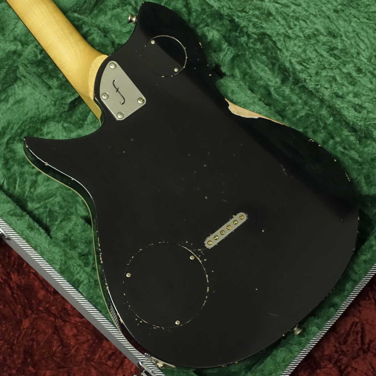 もとよりエイジングが施されているため、使用によるダメージの判別は困難ですが、フレットはほとんど減っておりませんので、あまり使用されなかったように見受けられます。
