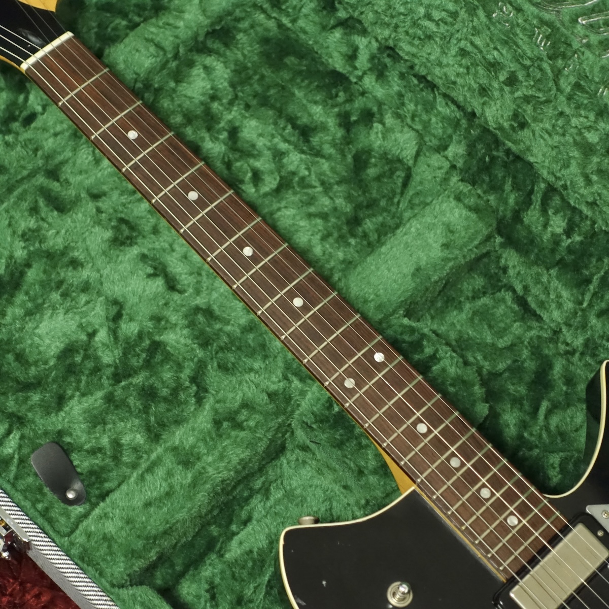 本機は大人気のRB6シリーズの中でも、ボルトオンジョイントやTLタイプのブリッジとサドルなど、Fender要素がやや強めなRB6T。リッケンバッカーを思わせる独特なシェイプと、わざとらしくない自然なエイジングが最高にクールなルックスです。
