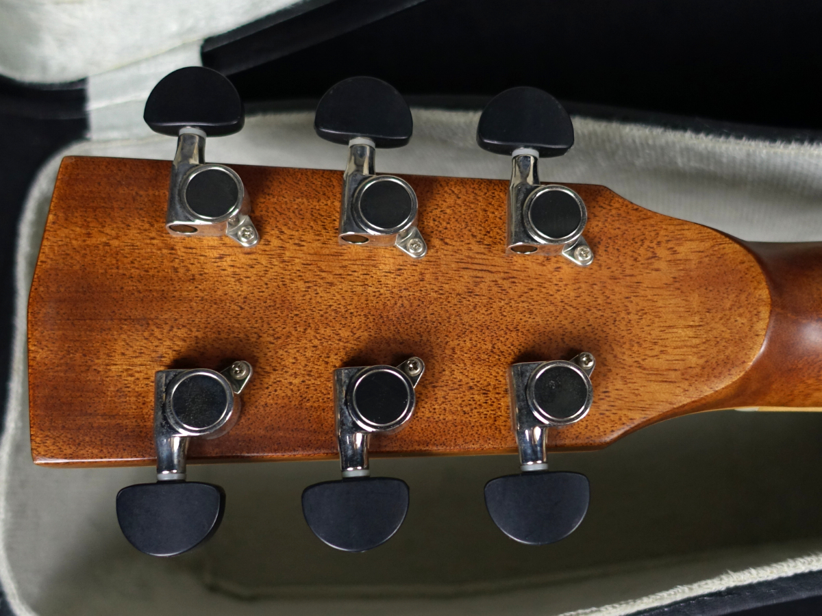 ダブテイルジョイントのマホガニーネック、ローズウッド指板&ブリッジ、ウッドバインディングやアバロンのロゼッタ(サウンドホールリング)が施されております。