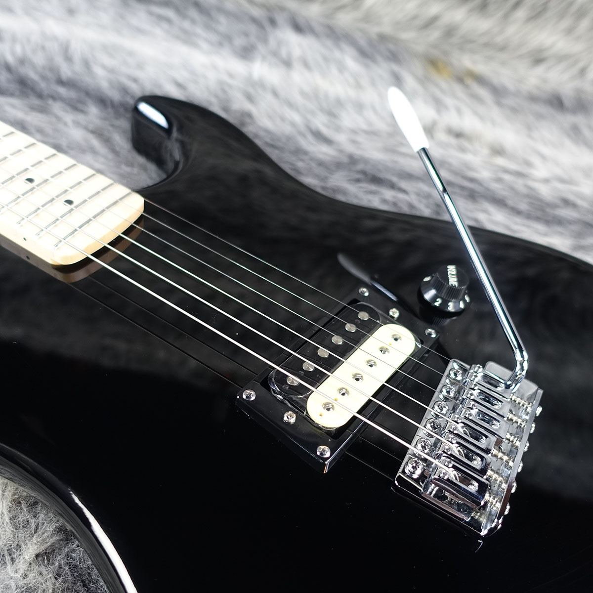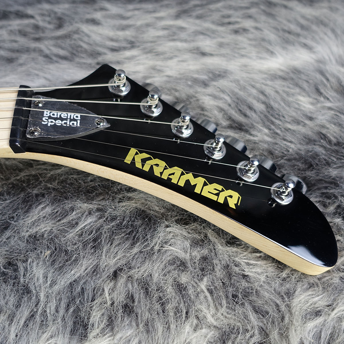 パワフルなアルニコ5 “ゼブラコイル” ハムバッカー、ヴォリューム・コントロール一基、豊かなトーンを内包したマホガニー・ボディ、メイプル・ネック、クレイマー・オリジナルのトレモロユニットを搭載。