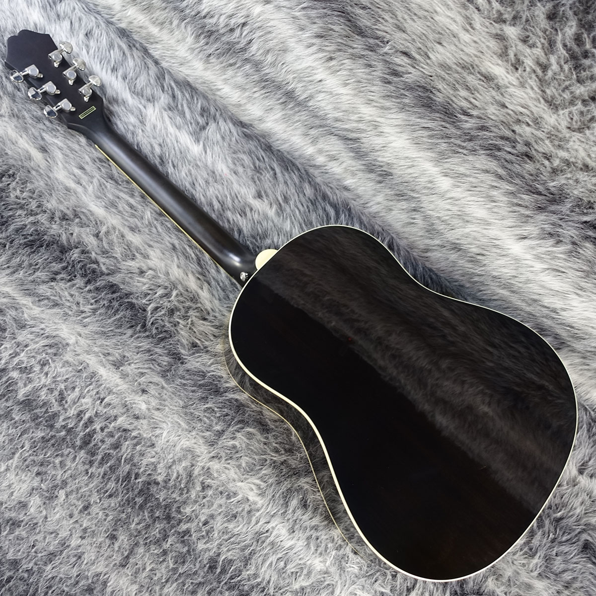 表板には4層のアイボリーとブラックのバインディング、裏板には1層のアイボリー色のバインディングが巻かれ、表板には単板スプルースを使用。