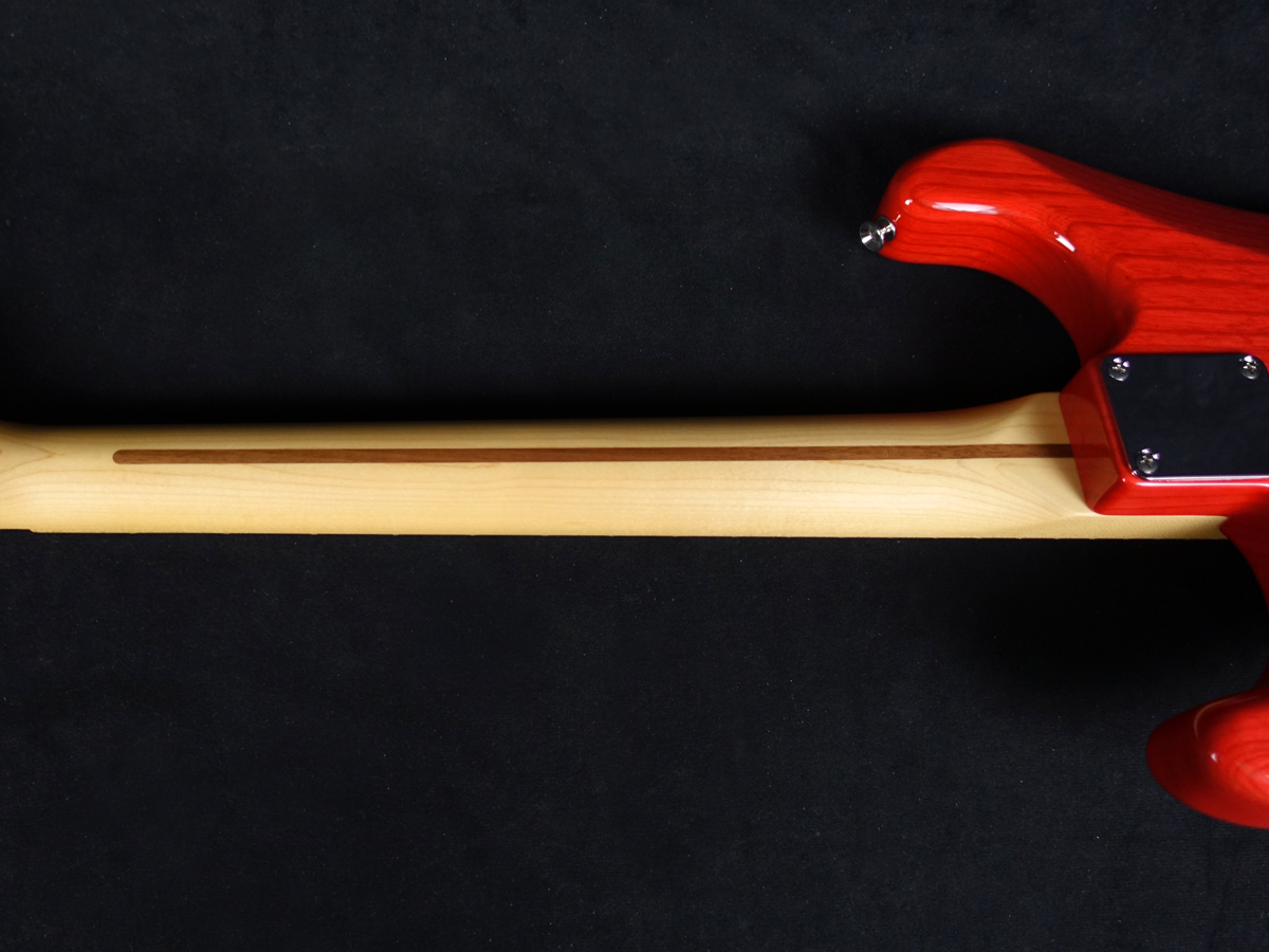 ルックスにも春畑道哉のこだわりが反映され、鮮やかなトランスピンクカラーが映えるフレイムメイプルトップのアッシュボディはノーピックガード仕様で、エレガントな印象を醸し出しています。