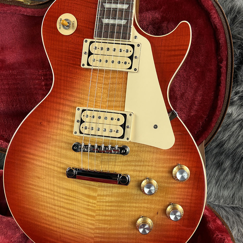 このような特色が加えられながらも、Les Paul Standard 60sの広く愛される基本仕様に変更はなく、ウェイトリリーフ無しのソリッドマホガニーボディ、AAグレードのフィギュアドメイプルトップ、Slim Taperプロファイルのマホガニーネック、ローズウッド指板、22フレット仕様のミディアムジャンボフレット、トラペゾイドインレイを擁しています。