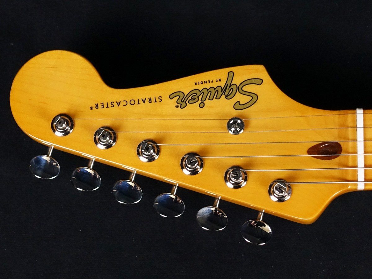 ヘッドやネックは50年代のStratocasterにインスパイアされた仕上げとなっており、本格的なオールドスクールの風格をまとっています。