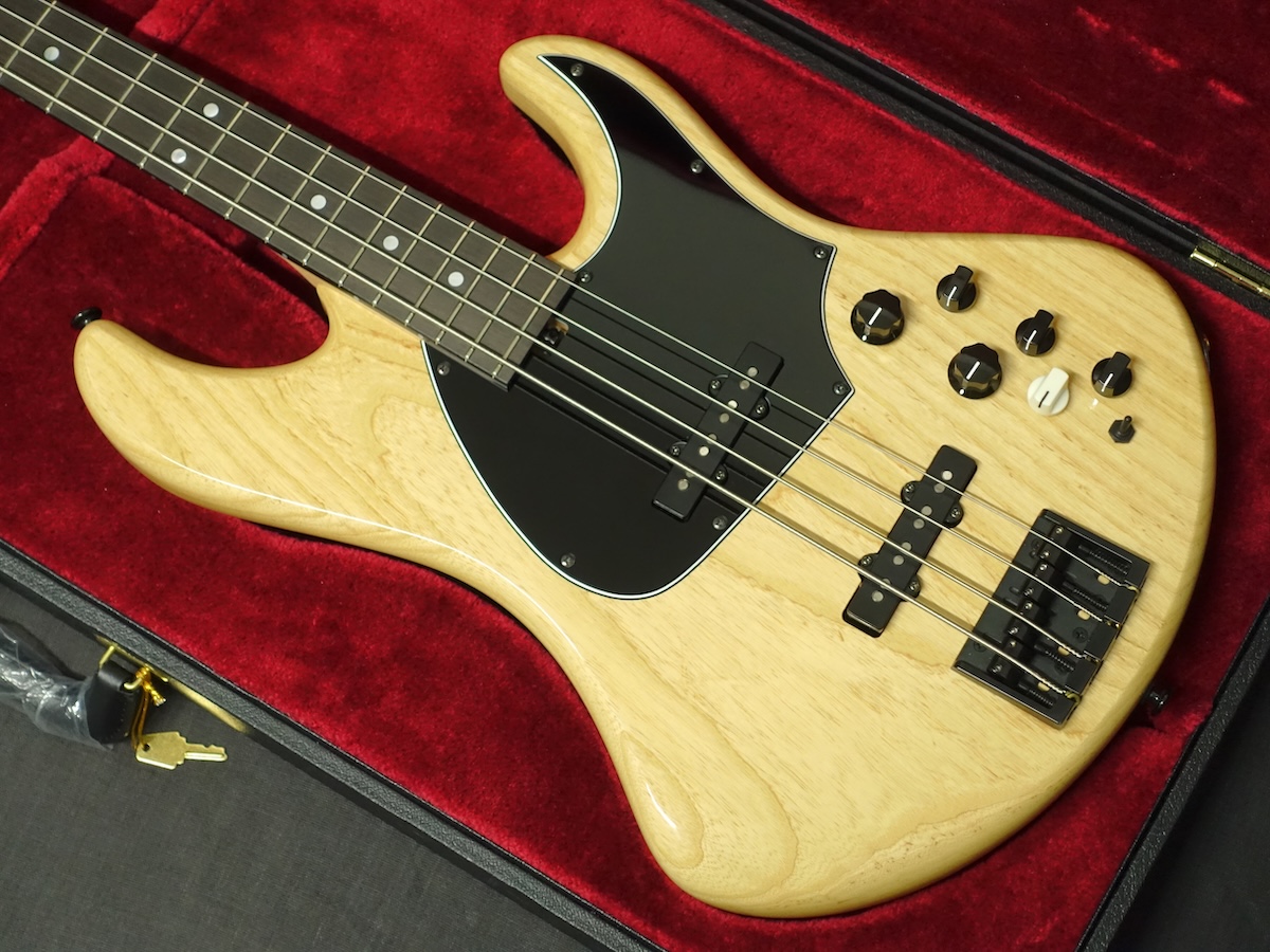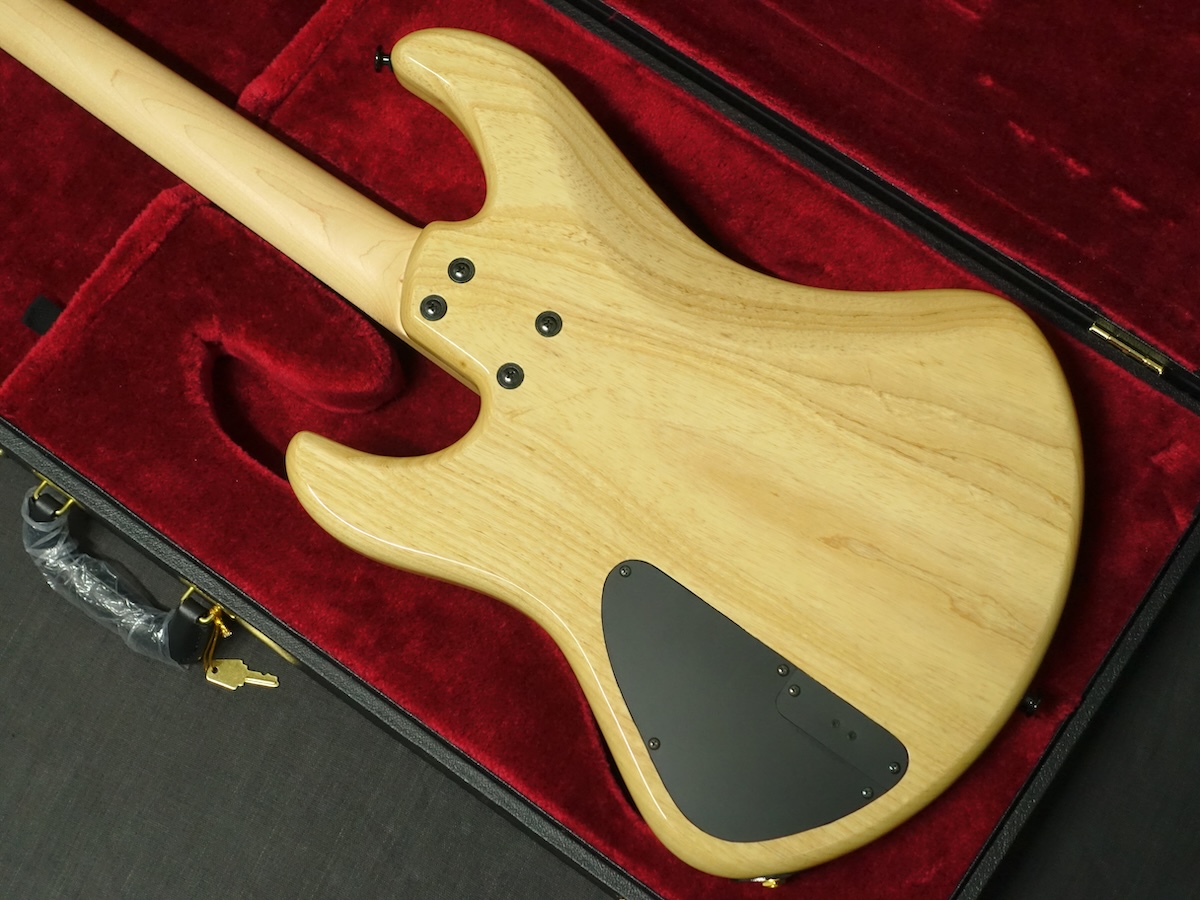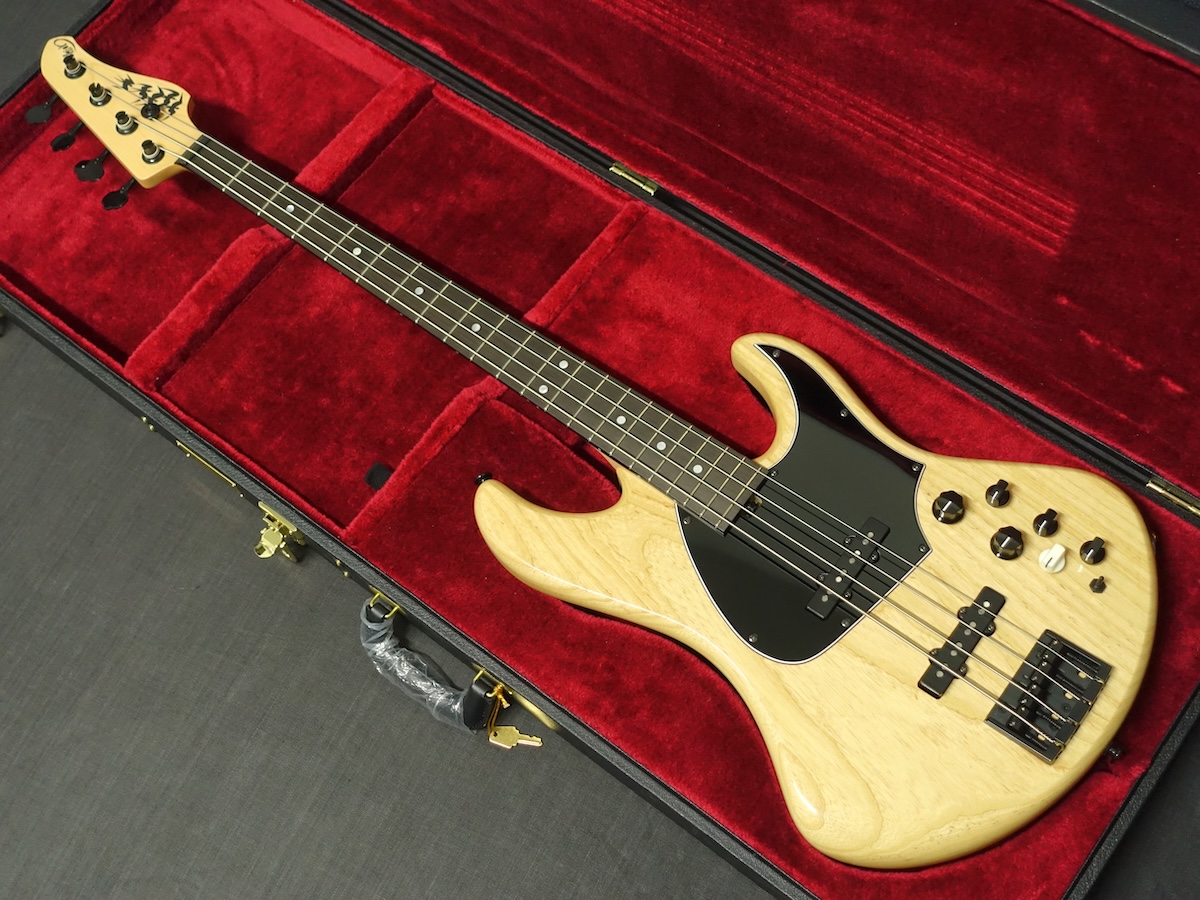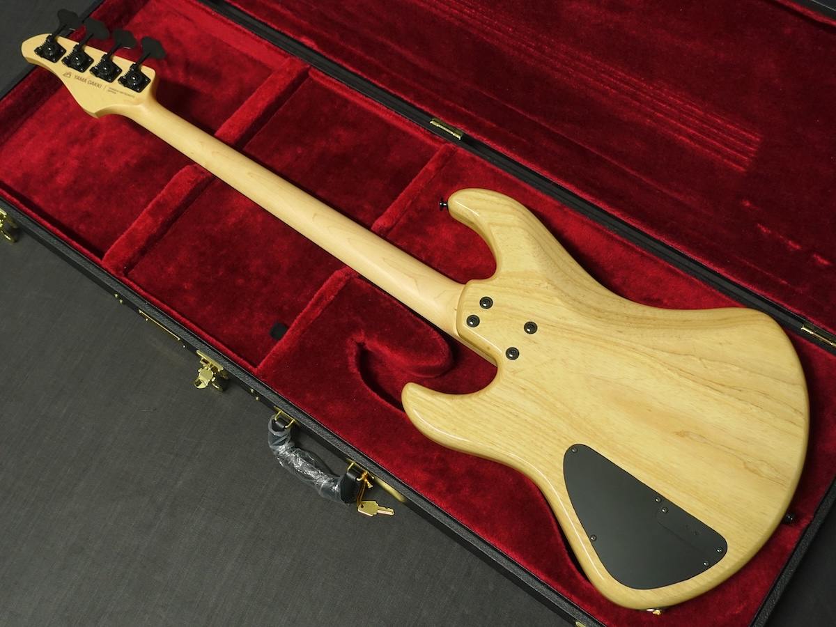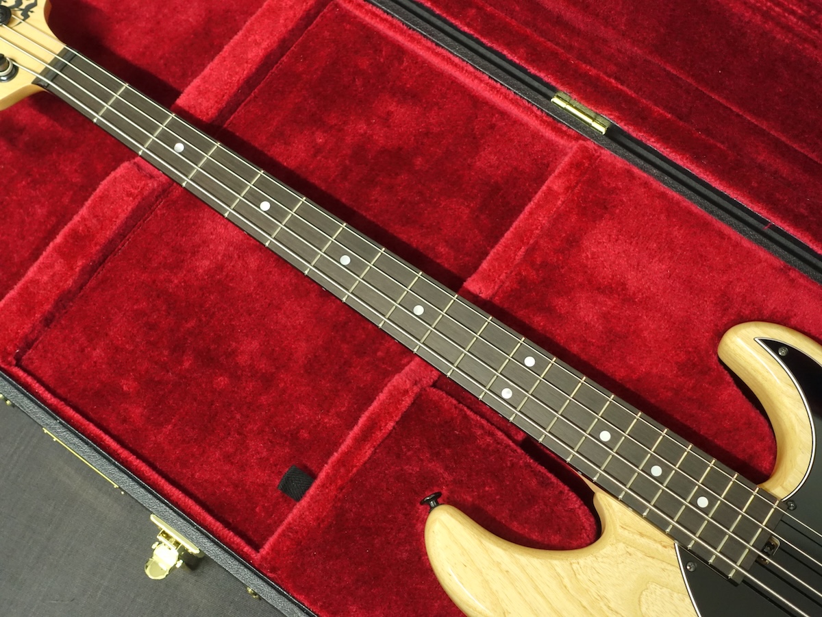 オリジナルシェイプのアッシュボディにメイプルネック、エボニーフィンガーボードをセットしたウッドマテリアル。