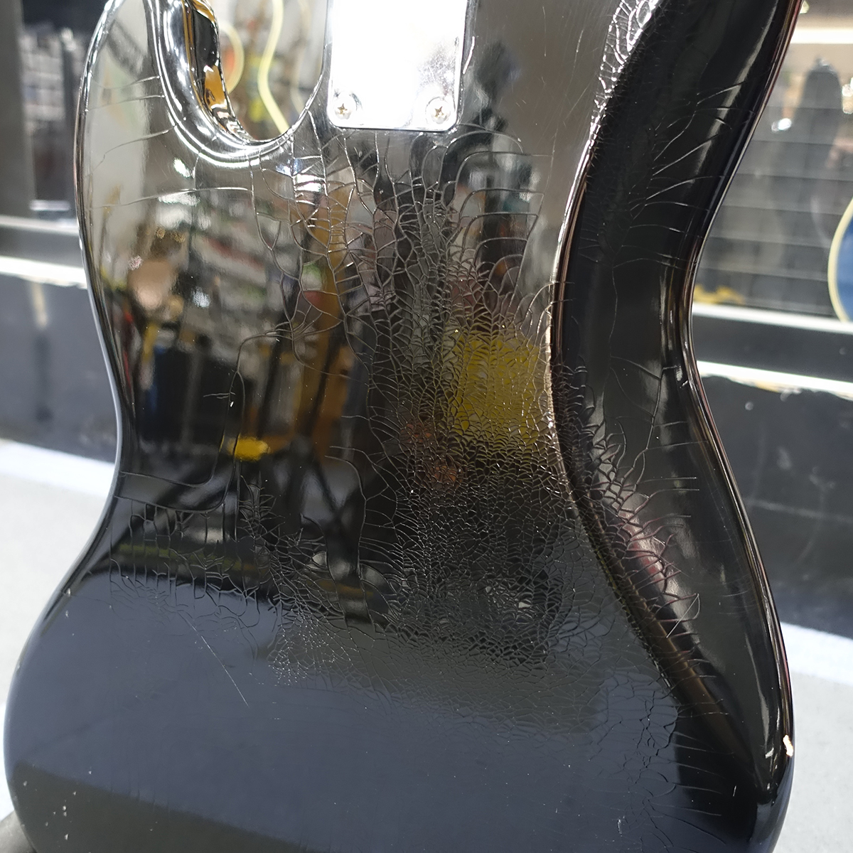 ネックポケットにシムが挟まれていますが、現在4弦:1弦の弦高が約2.5mm:約2.0mmのセッティングで演奏性は良好です。