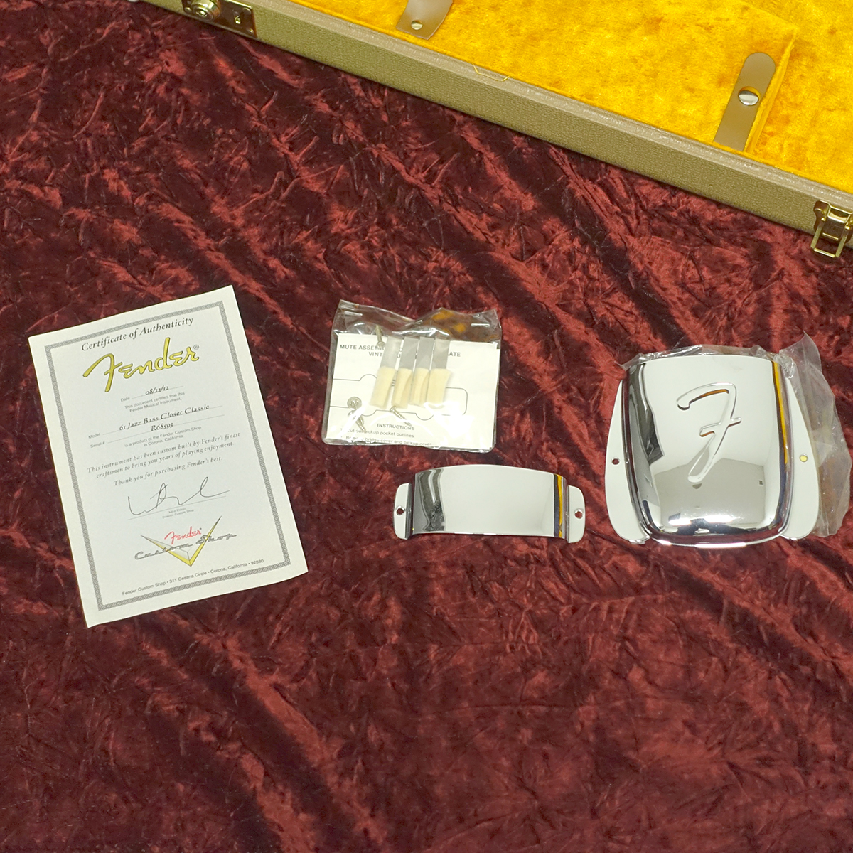 ハードケース、認定書、ピックアップカバーが付属します。